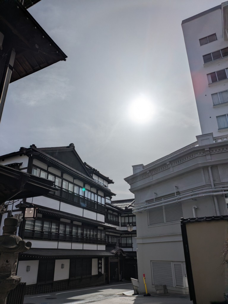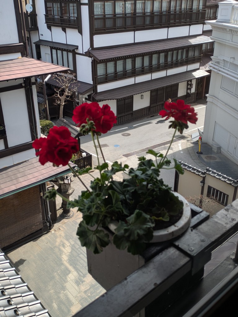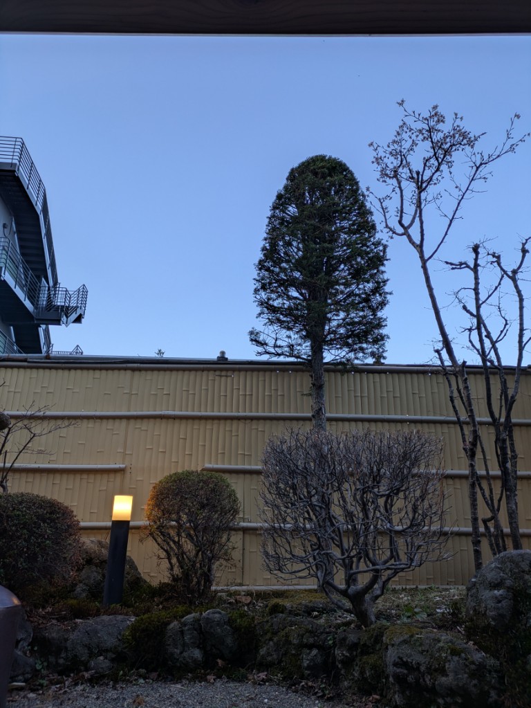 朝方は気温が5℃まで下がっていましたが今は当館玄関先の気温計で18℃まで上がっています。