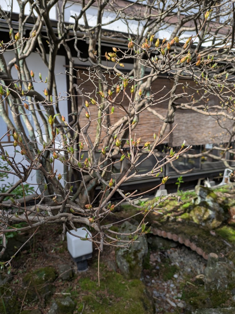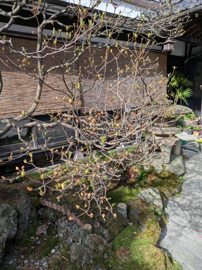 玄関先のツツジの花芽は少しづつ膨らんでいますがまだまだの状態です。
