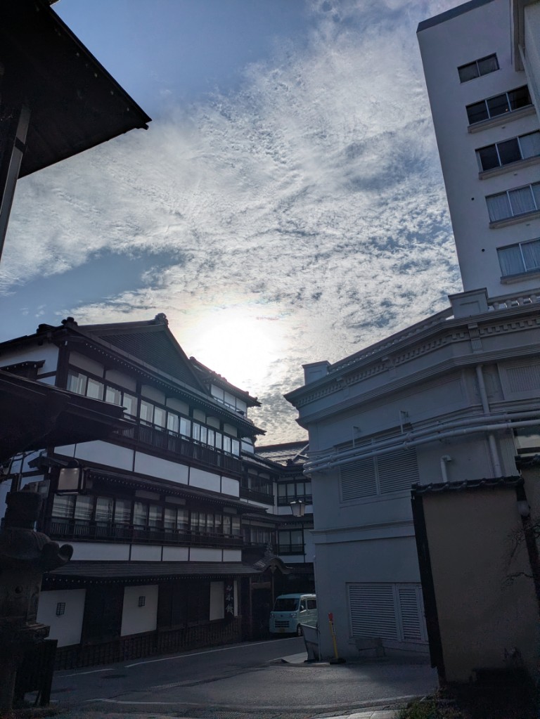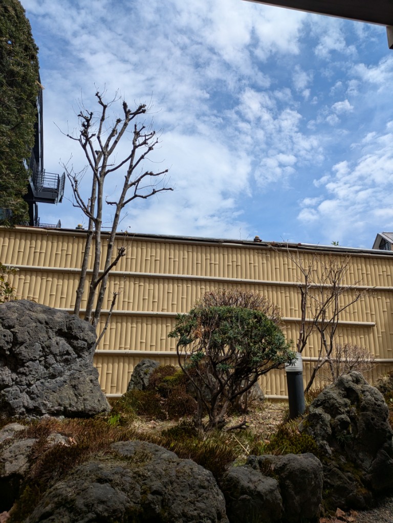 気温は当館玄関先の気温計で18℃まで上がっています。