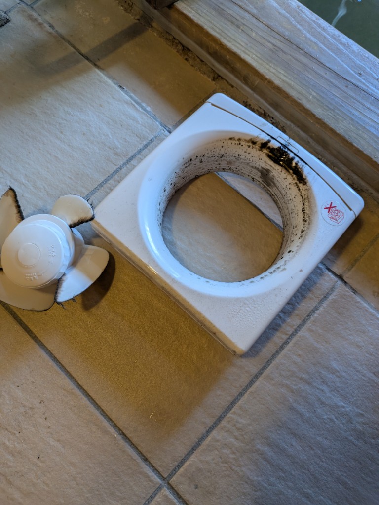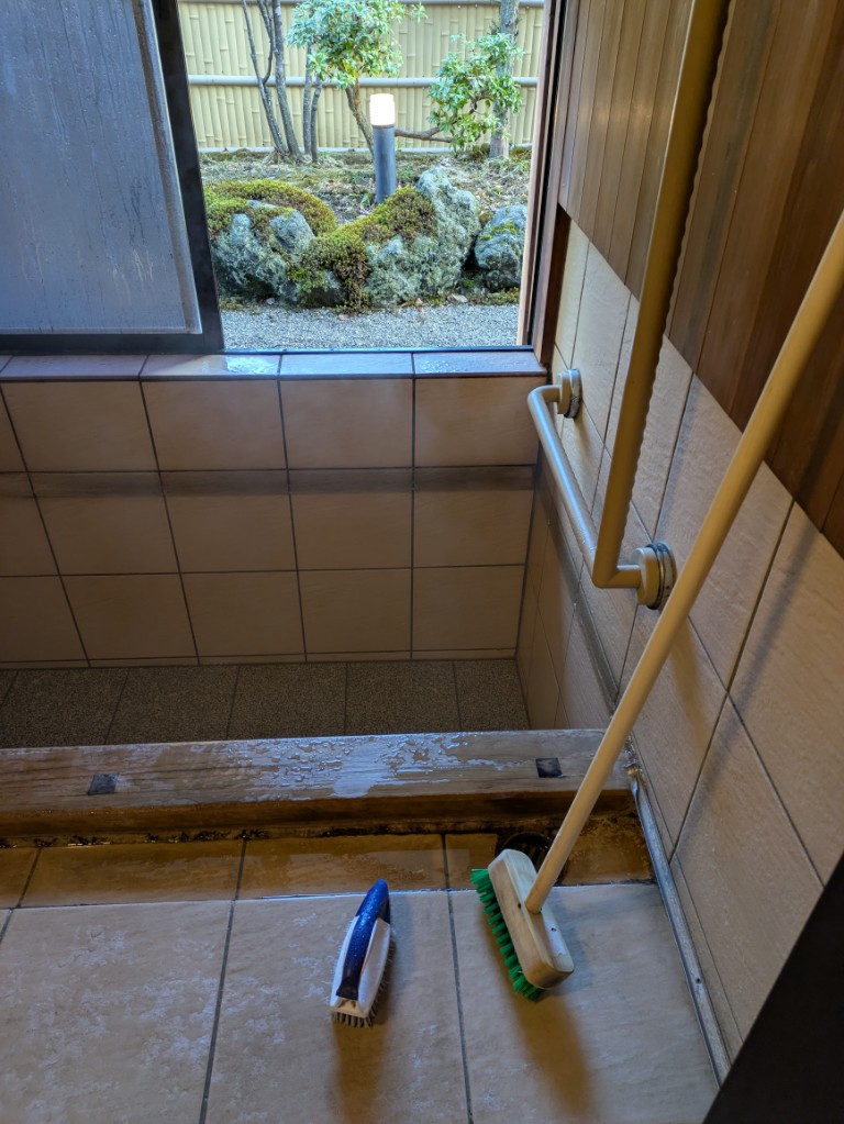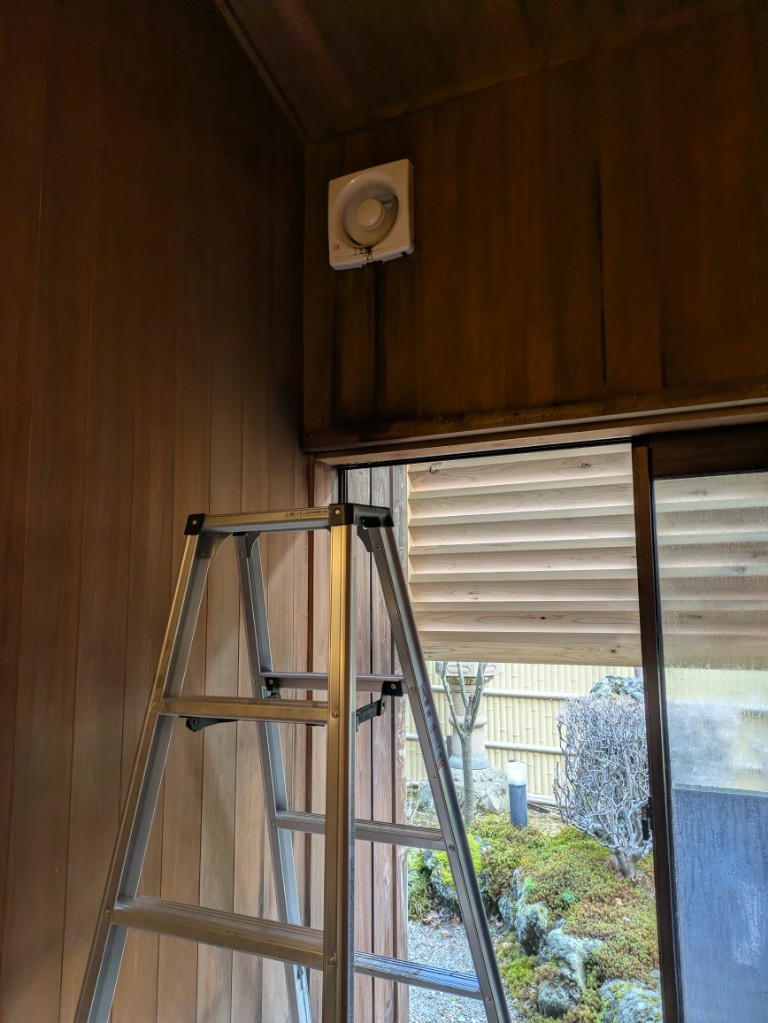 仕入れから早く帰ってこられましたので貸切風呂の換気扇と照明器具のカバーの手入れをしました。