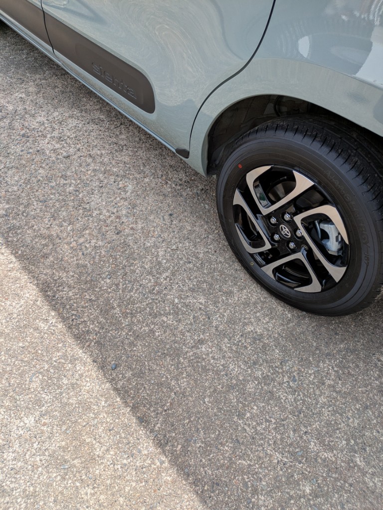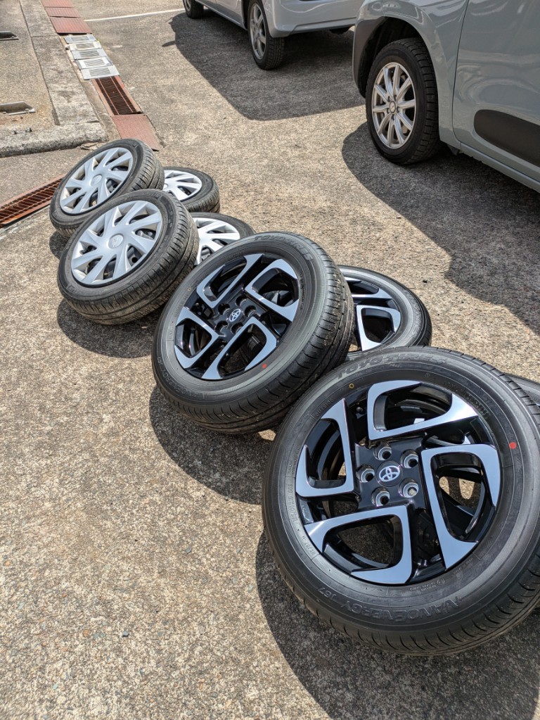 シエンタは昨年の雪の降る前にスタッドレスタイヤを装着してもらい納車でしたので初めてノーマルタイヤを履かせました。