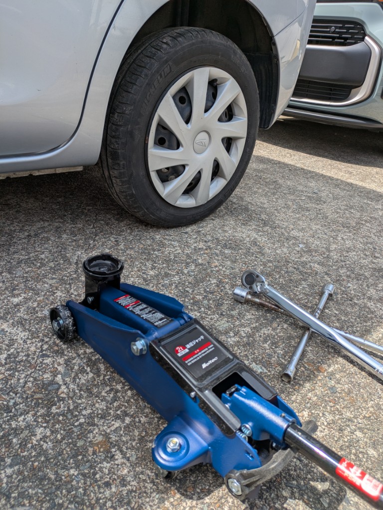 最初に軽自動車のタイヤ交換をしました。