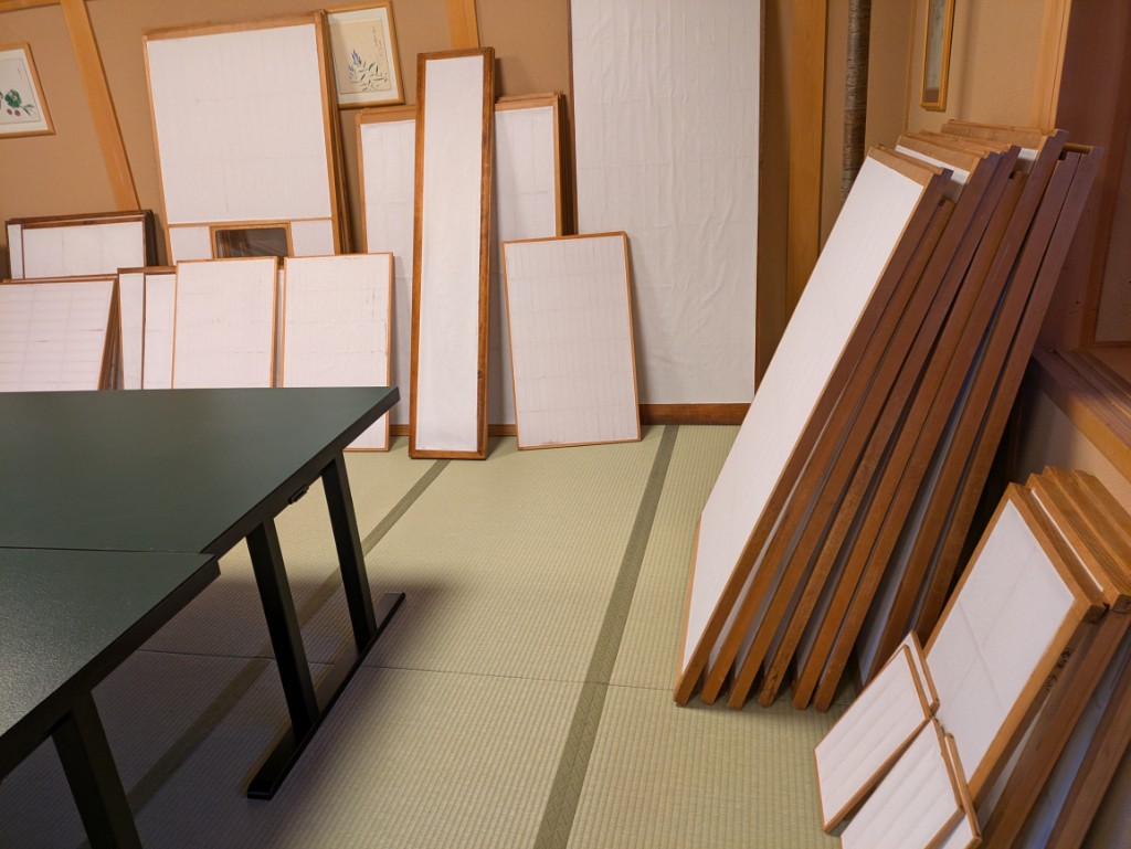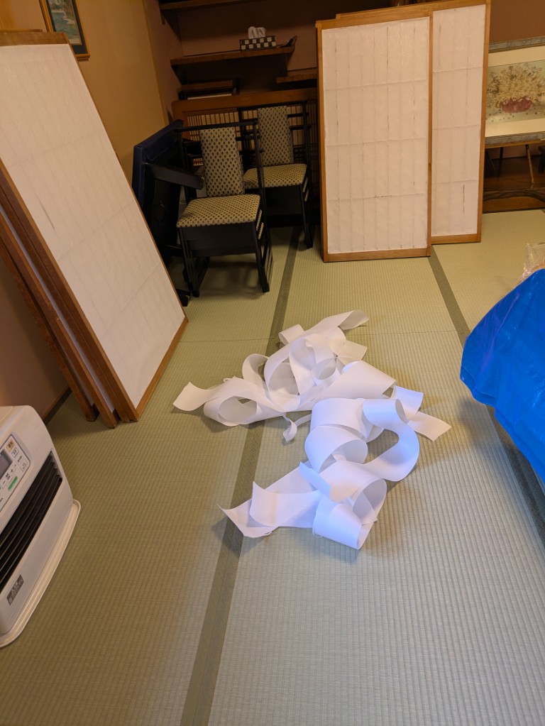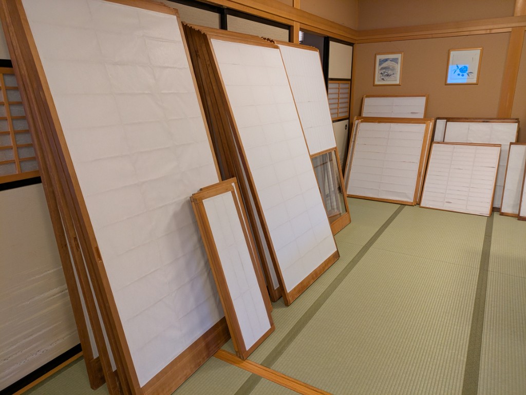 大小あわせて91本の建具の障子紙の貼替えが1日で終わってほっとしました。広間で一晩乾かして明日元に戻します。