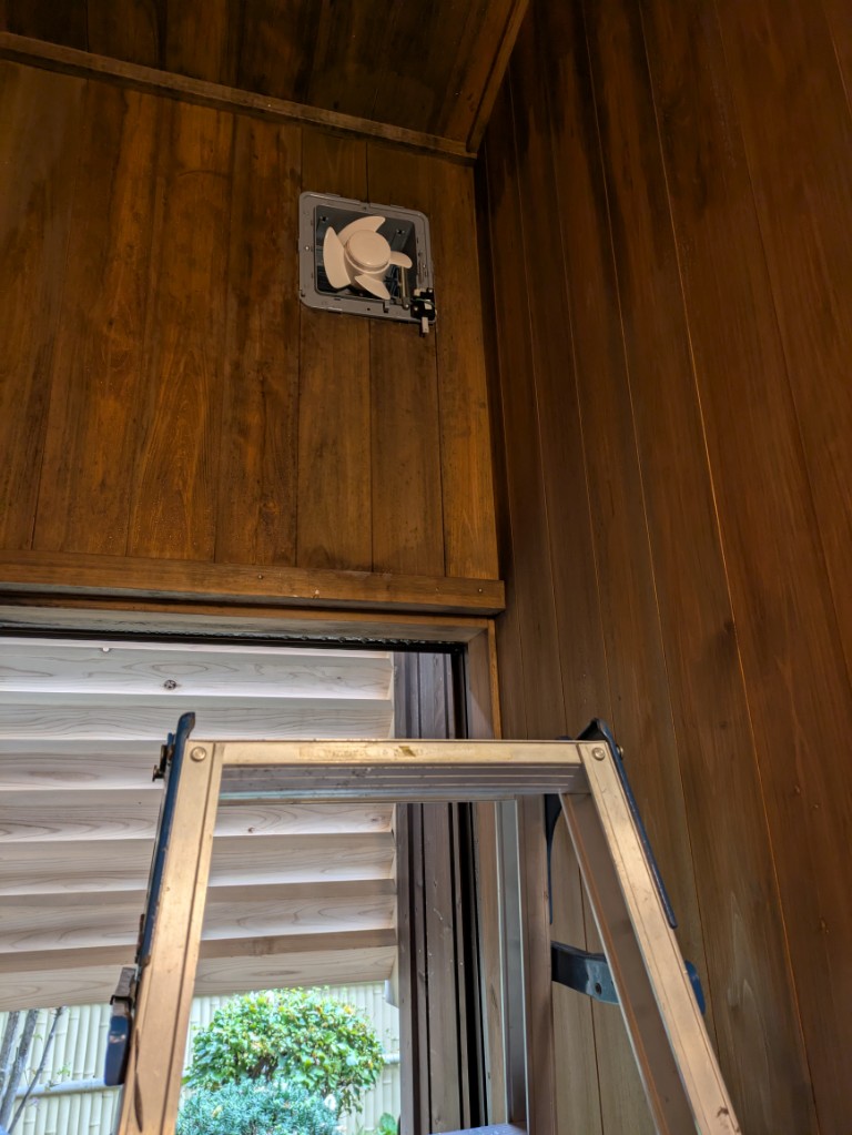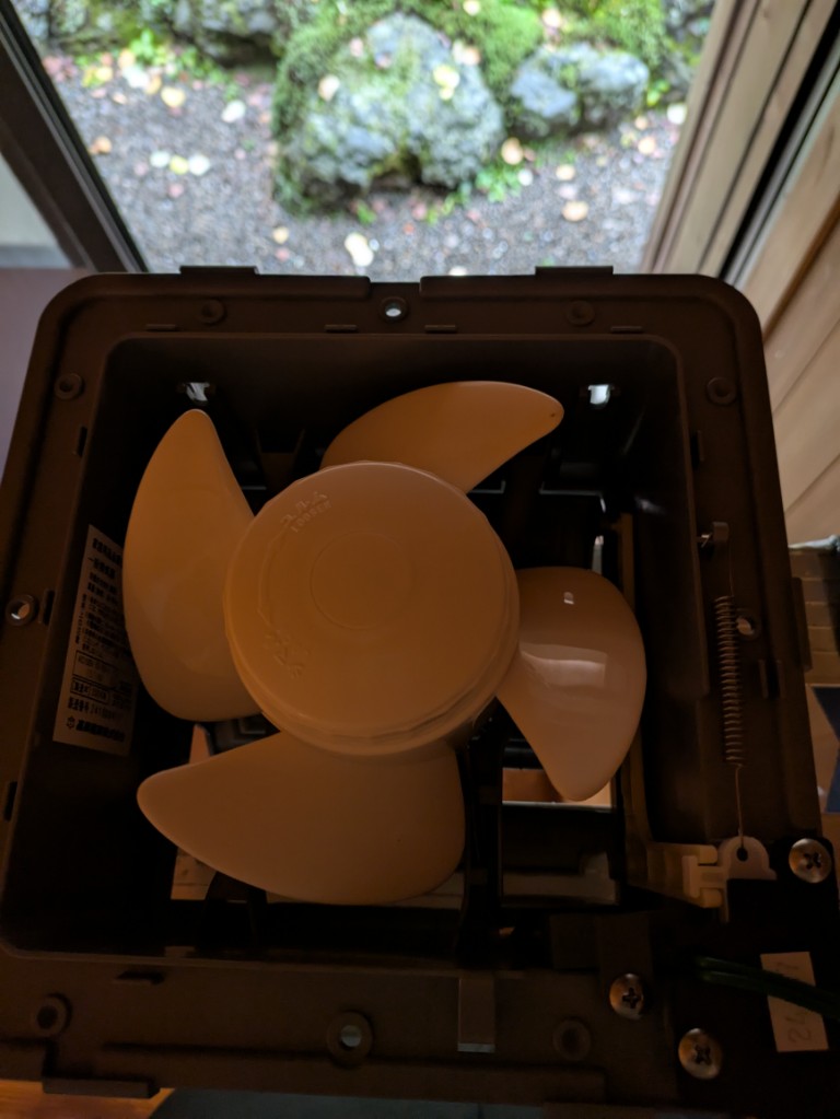 貸切風呂・檜造り瑠璃の湯の換気扇が壊れてしまいましたのでお湯の入れ換えとお掃除をしてから交換しました。