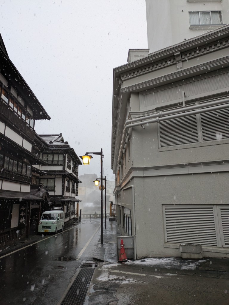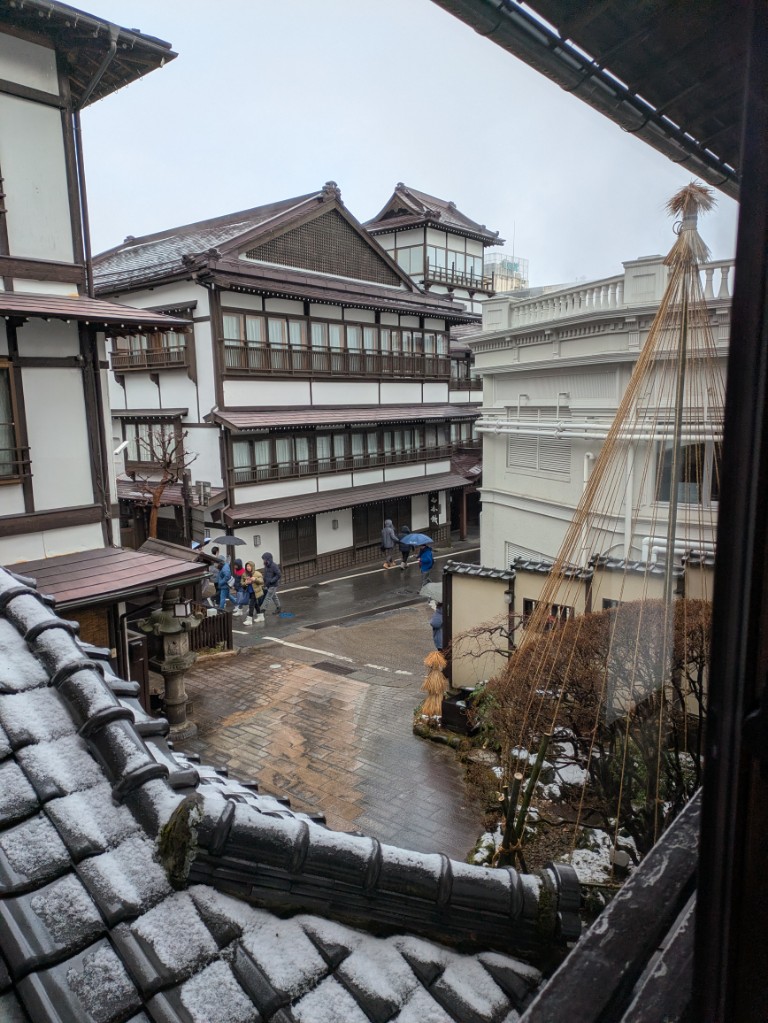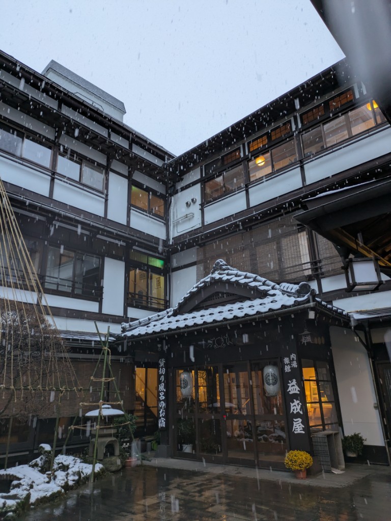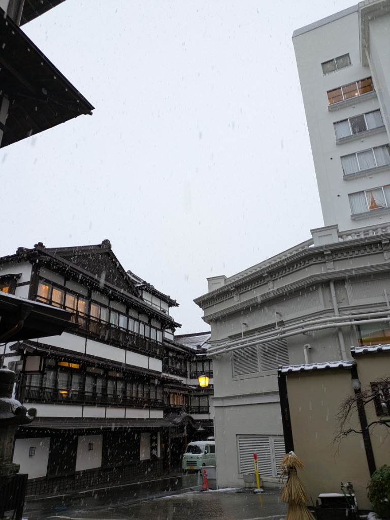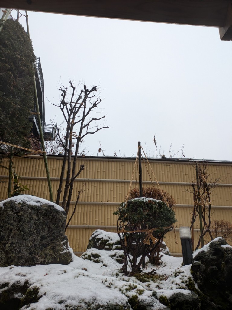 気温は当館玄関先の気温計で6℃まで上がっています。