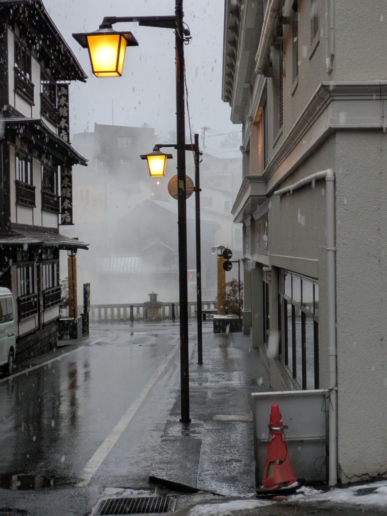 朝方は湿ったボタ雪が降っていましたがすぐに雨に変わり降ったり止んだりのぐずついた空模様です。