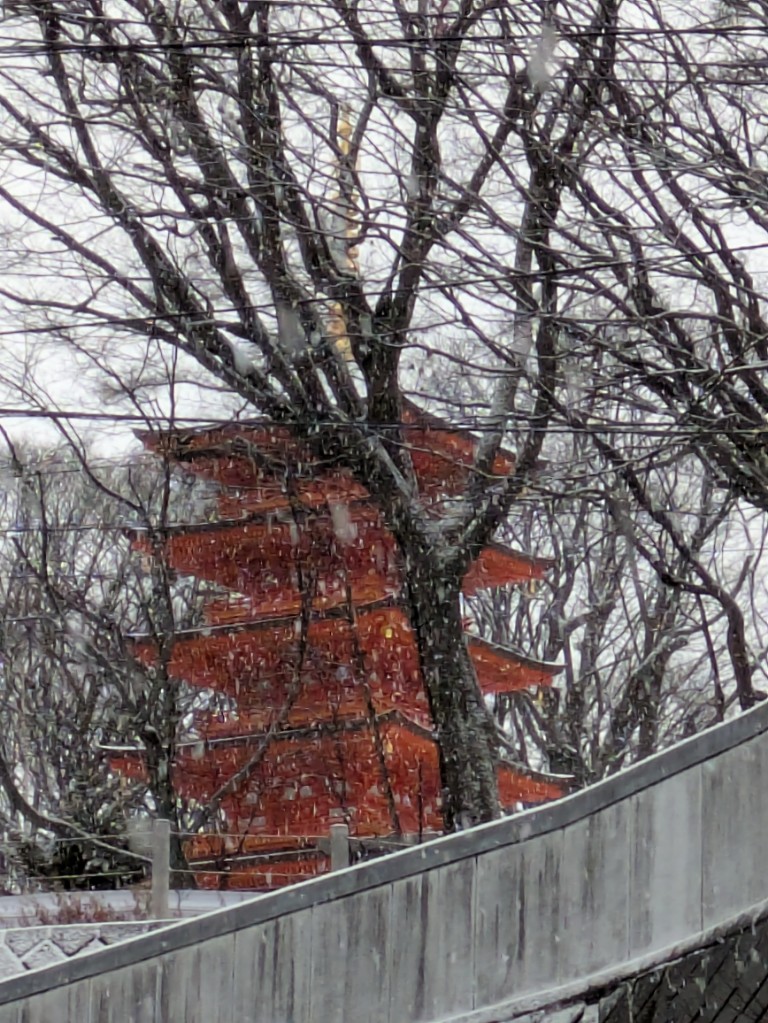 雪の中の光泉寺五重の塔が綺麗でした。