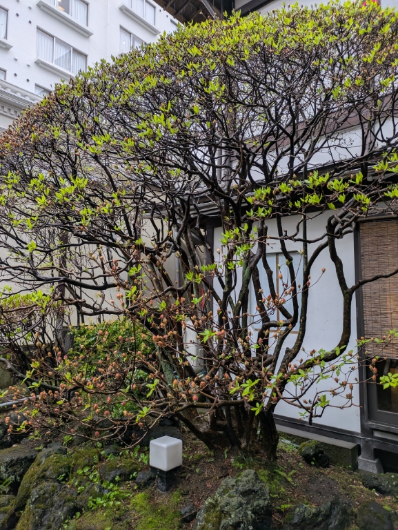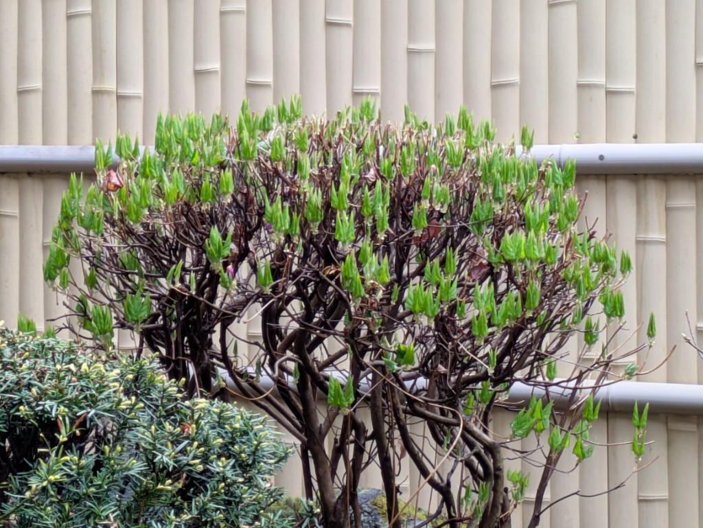 玄関先のツツジの様子です。開花までまだ足踏み状態です。