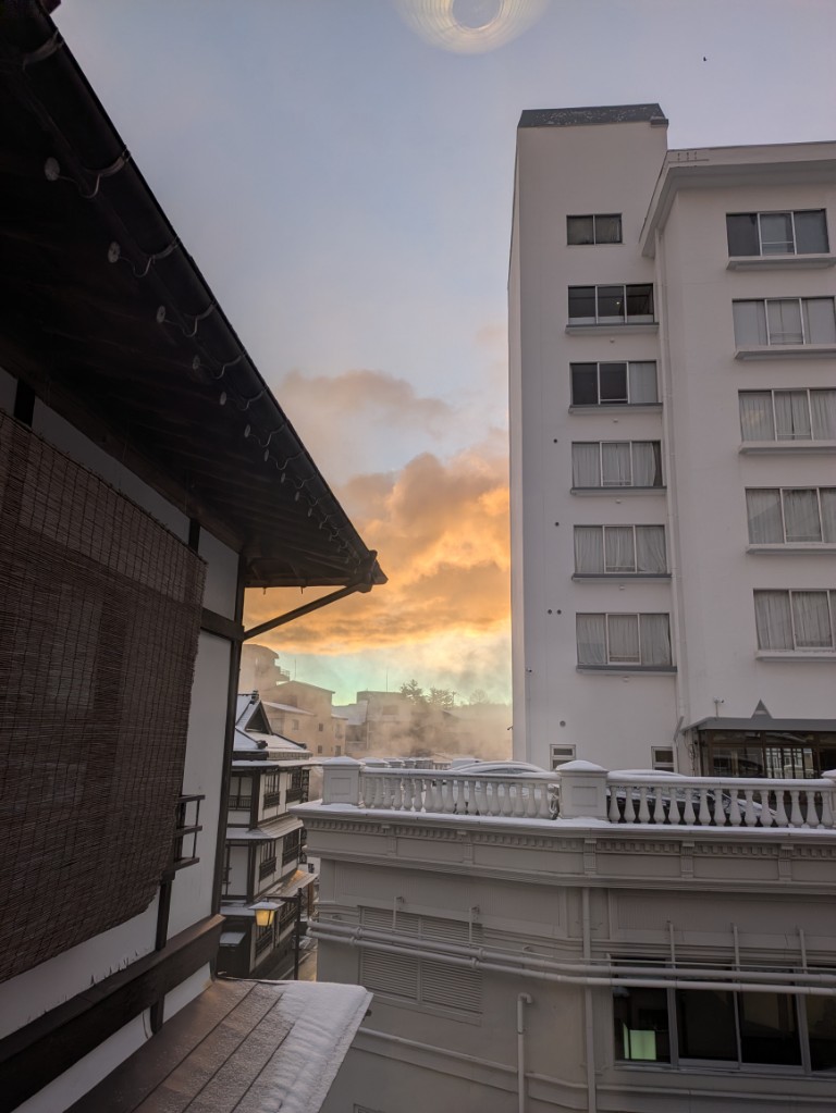 気温は当館玄関先の気温計で1℃と真冬の寒さになっています。
