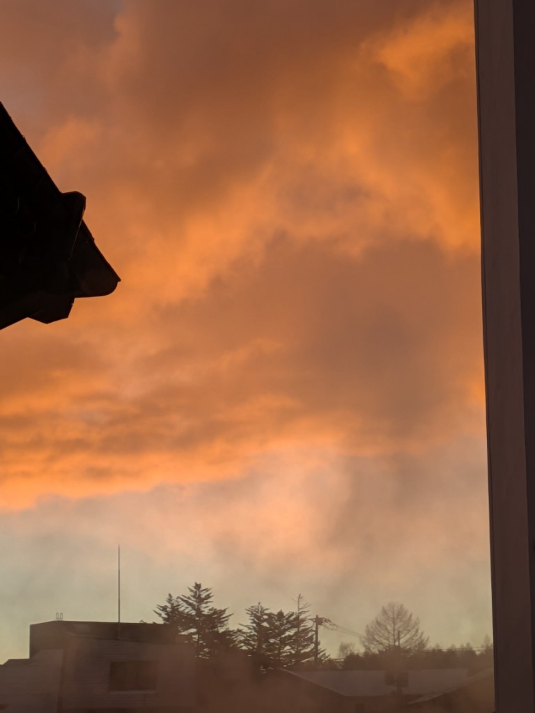 今朝の様子ですが3階廊下から見えた朝焼けです。