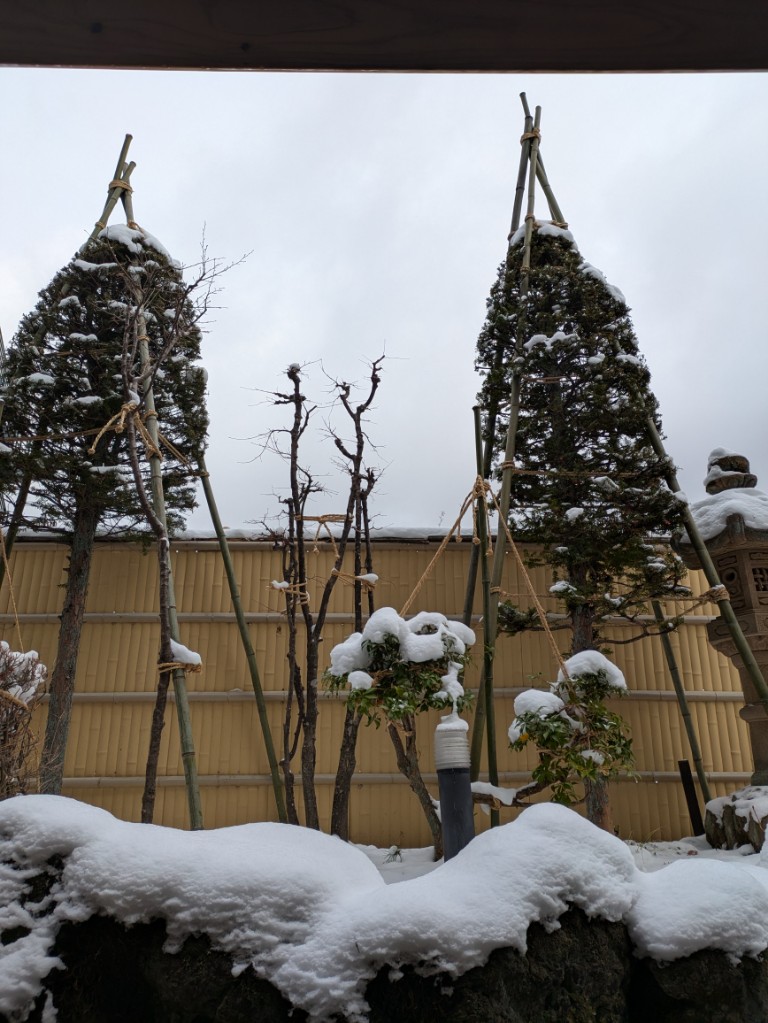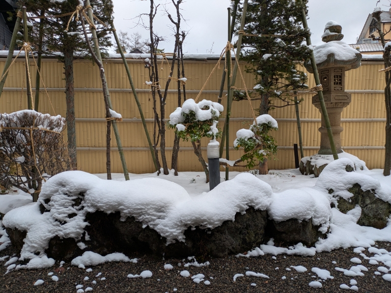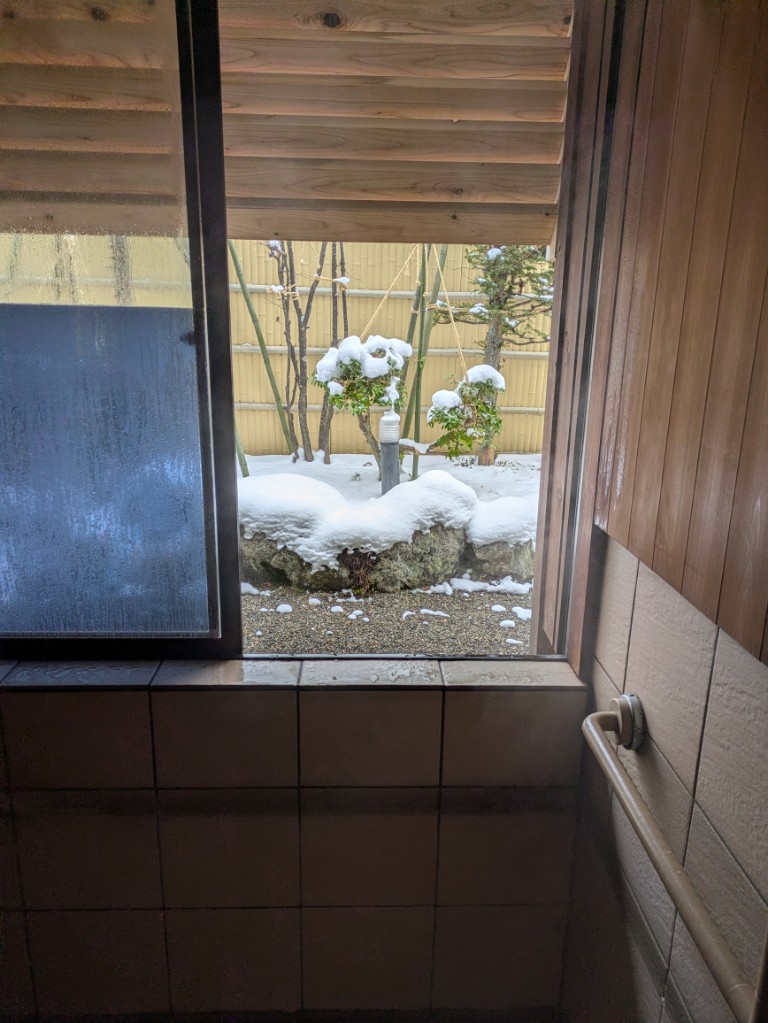 気温が低く雪は溶けませんので本日も雪見風呂を楽しんでいただけます。