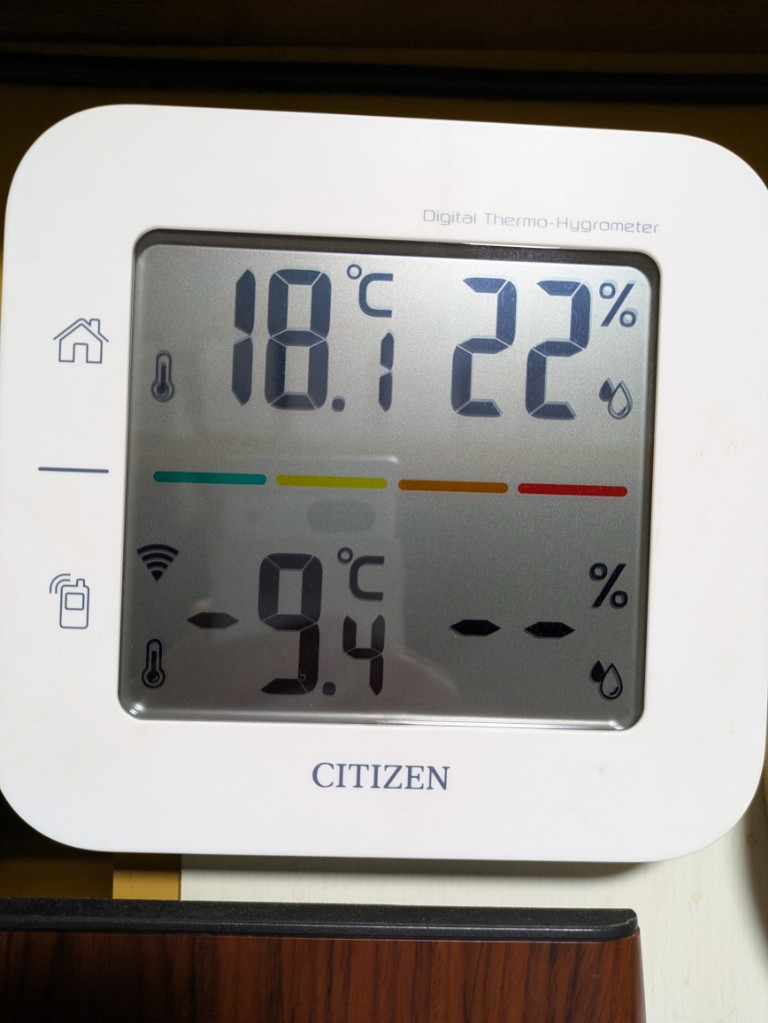 気温は当館玄関先の気温計で−9.4℃と今シーズン一番の冷え込みとなっています。
