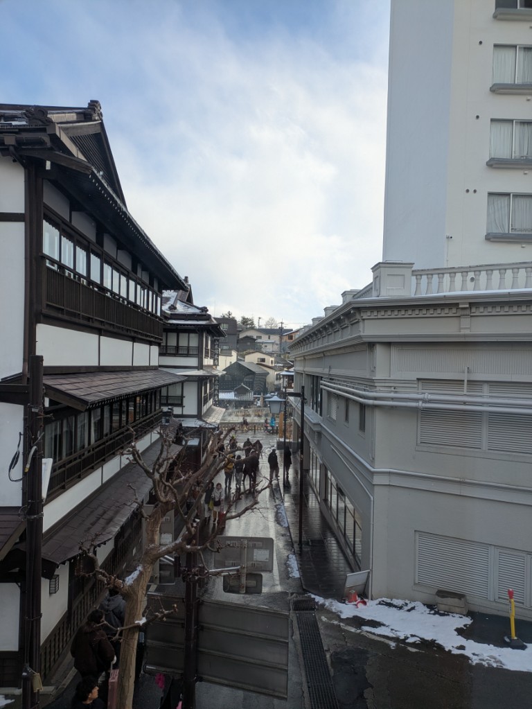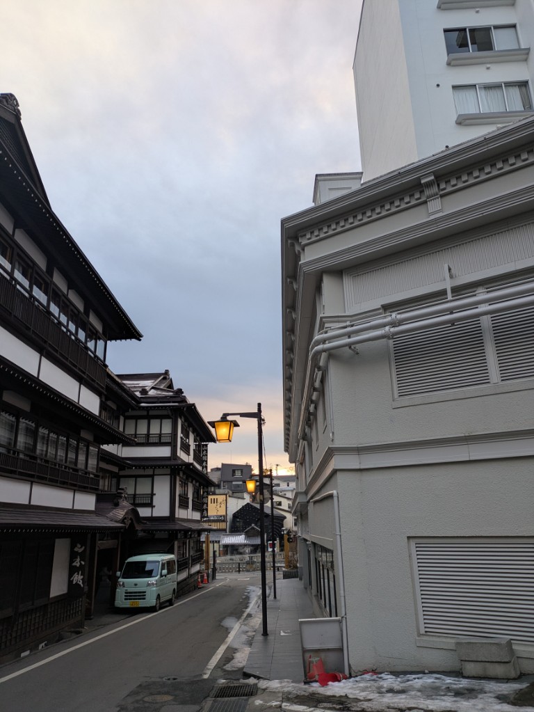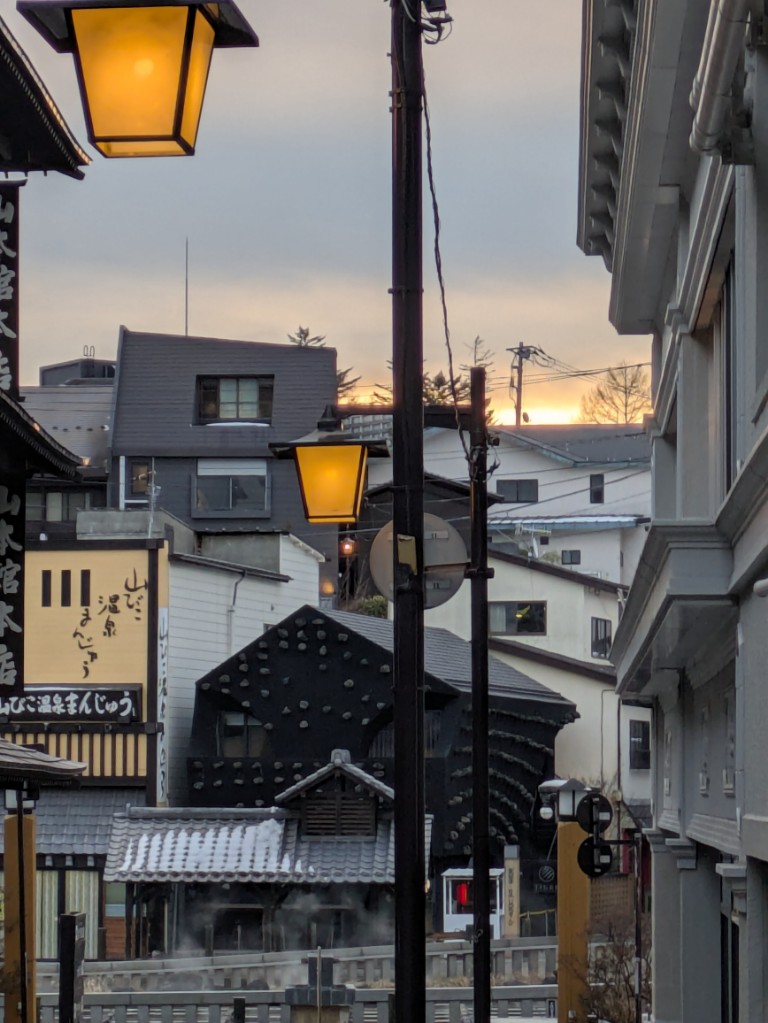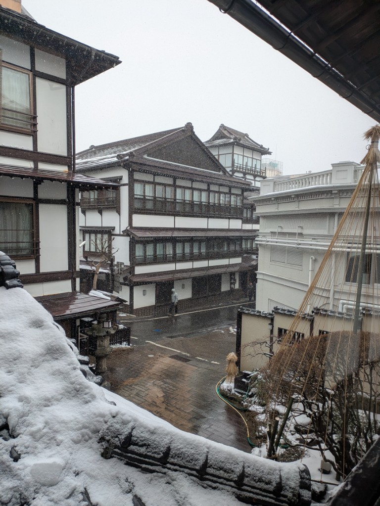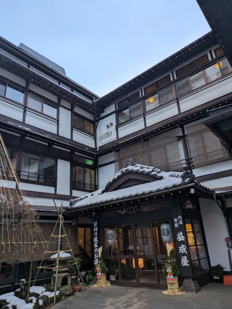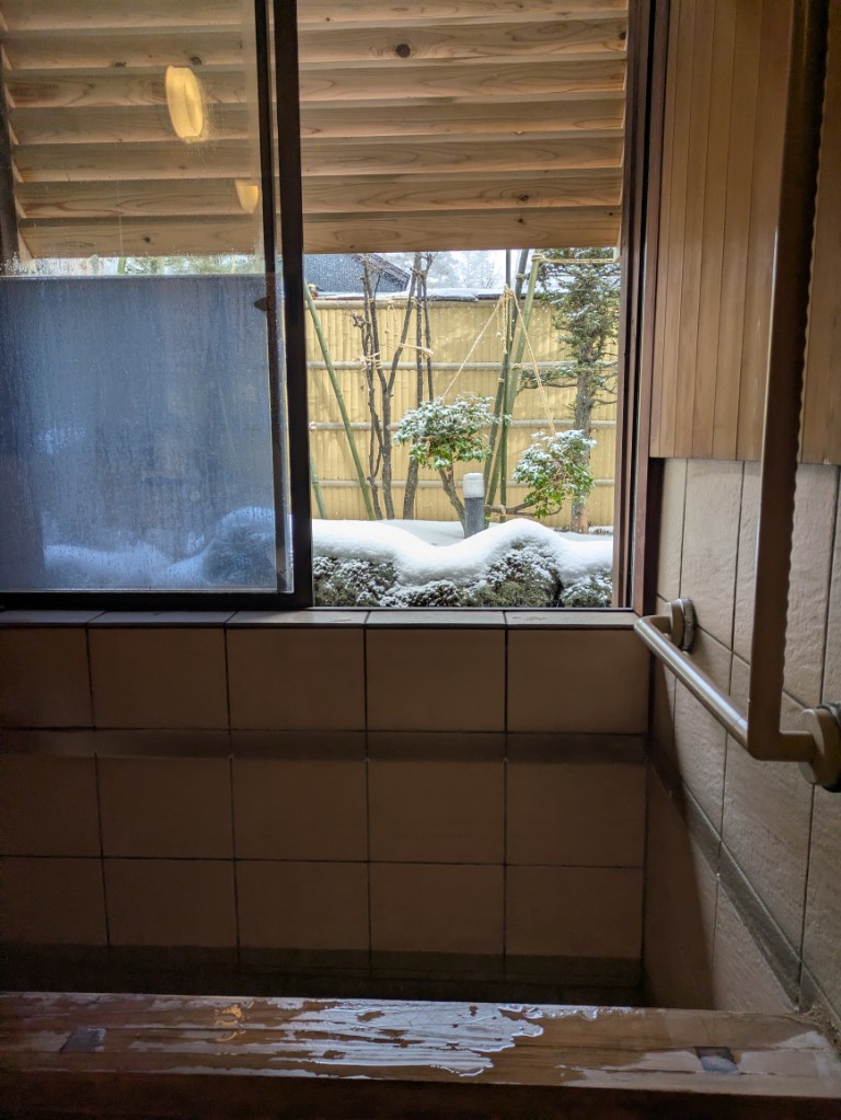 気温は当館玄関先の気温計で−1℃と下がってきました。