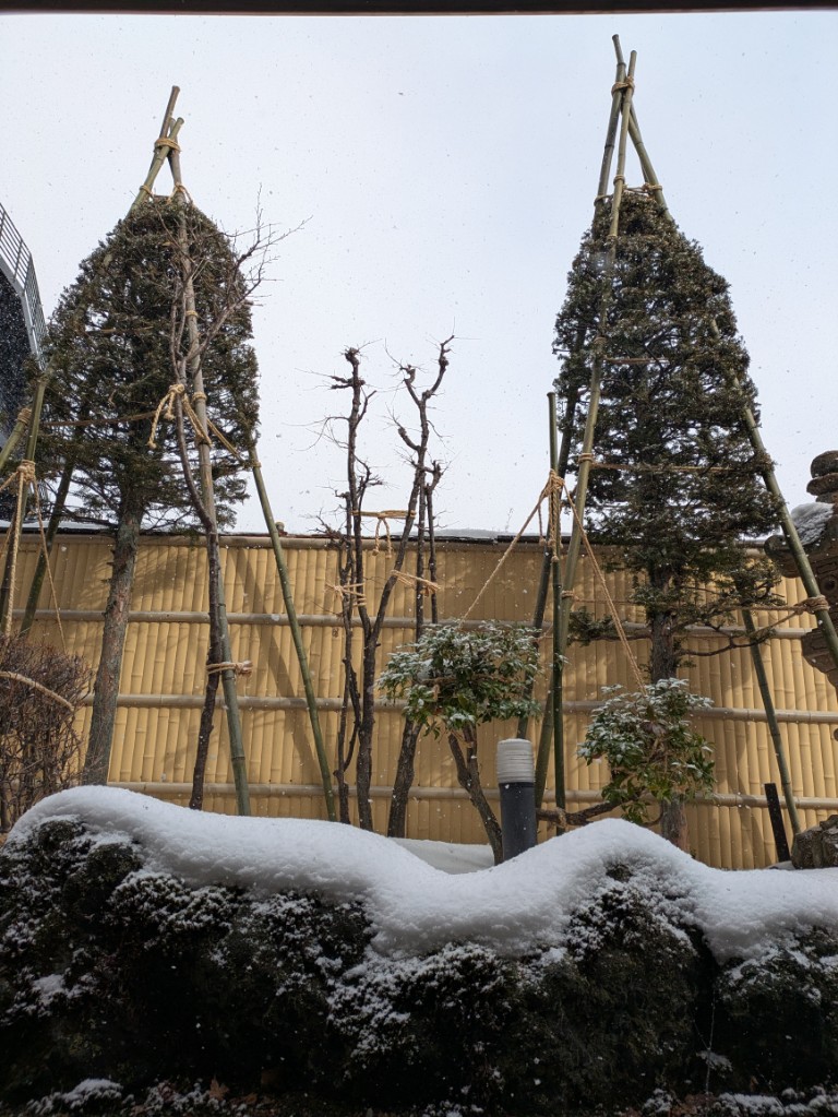 お掃除中は大粒の雪が降っていました。