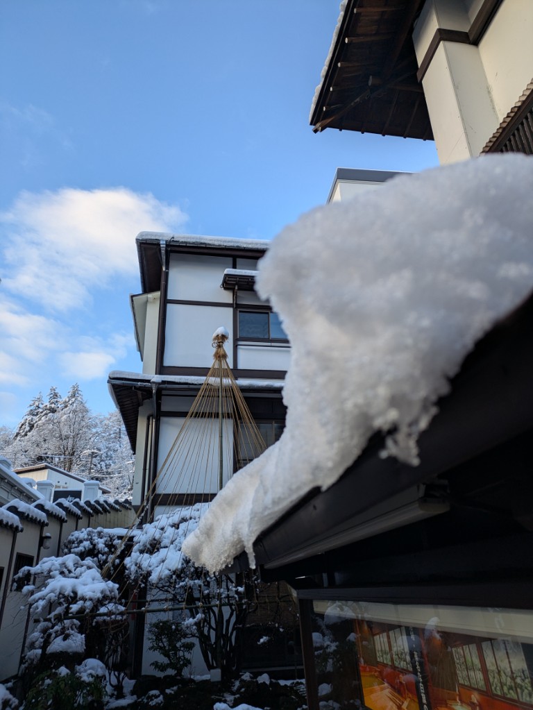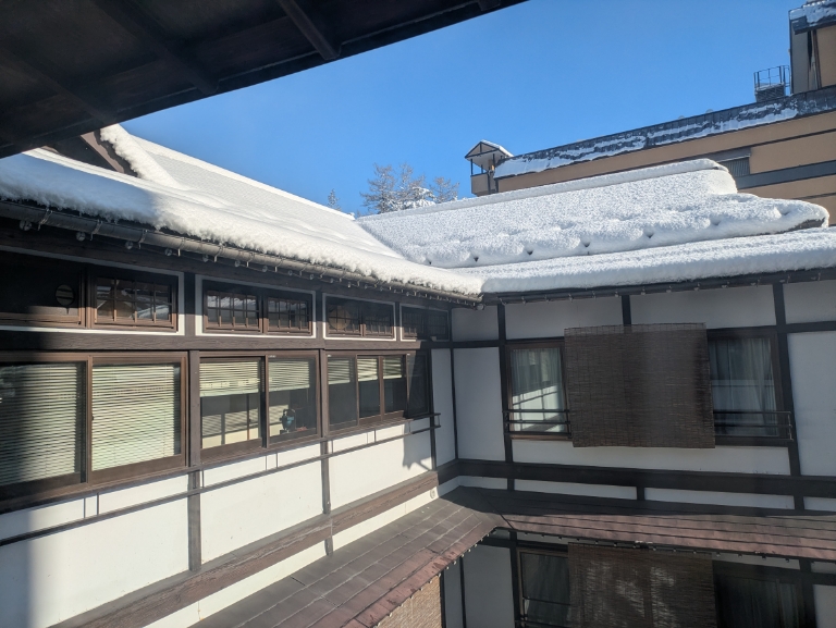 すぐに溶けそうですが屋根の上にもしっかり積もっています。