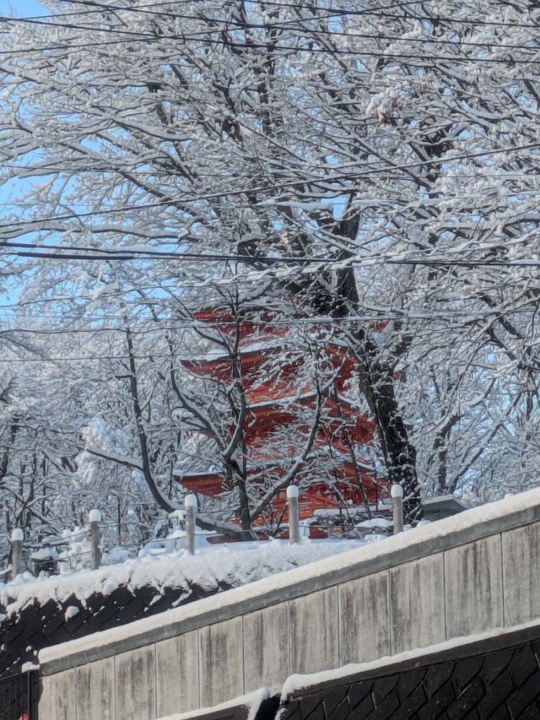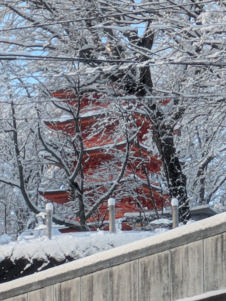 3月に入っての降雪でしたが光泉寺五重の塔の雪景色が綺麗でした。