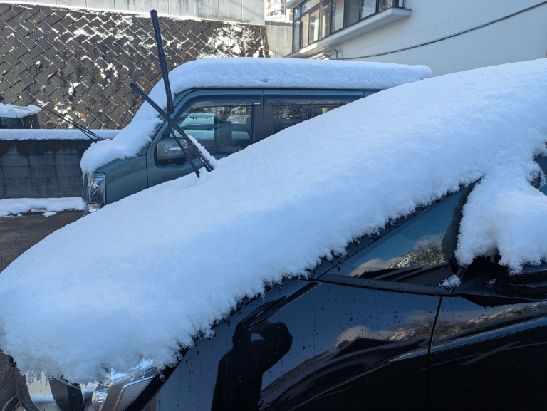 お客様の車の雪下ろしをしましたが20cm位積もっていました。結構積もったので驚きました。