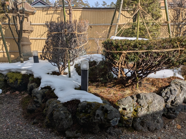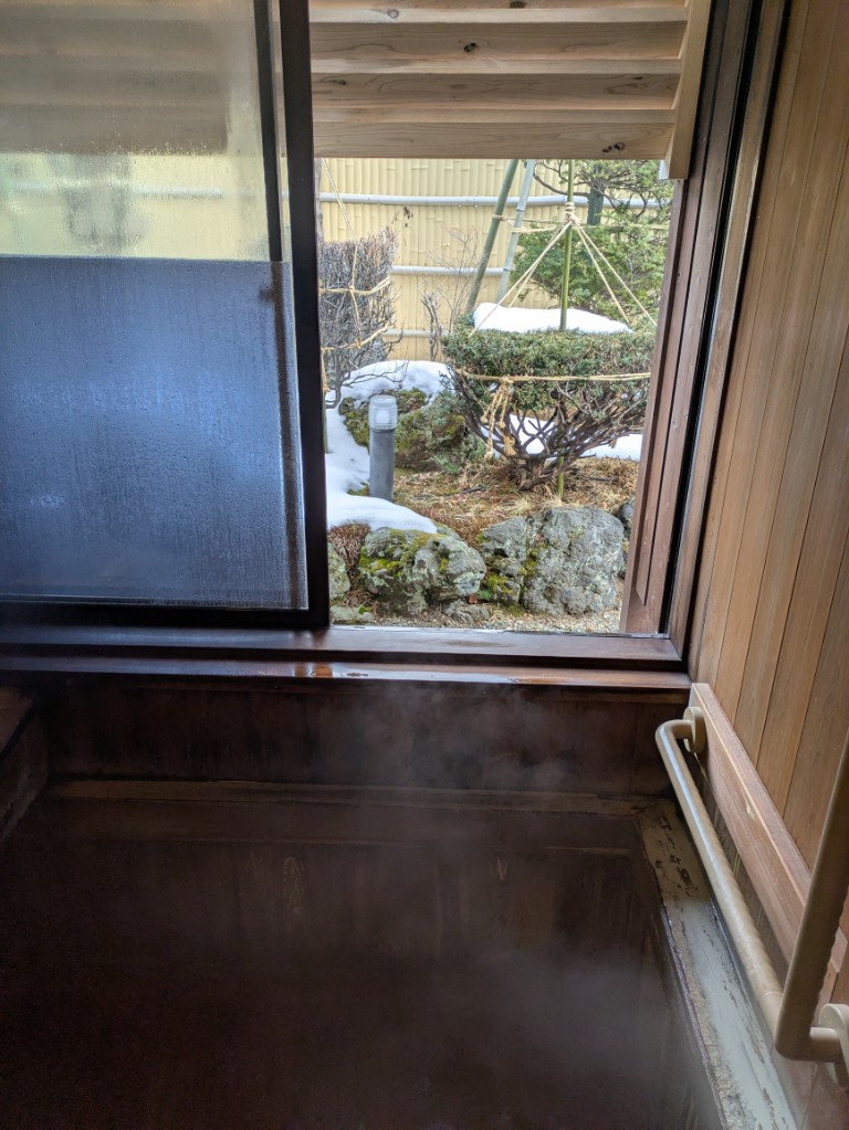 気温は当館玄関先の気温計で7℃近くまで上がっています。