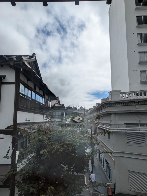 気温は当館玄関先の気温計で17℃まで上がっています。