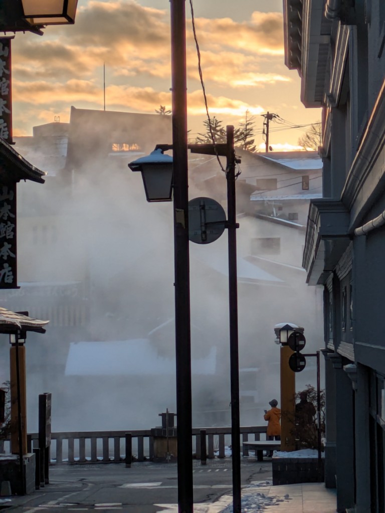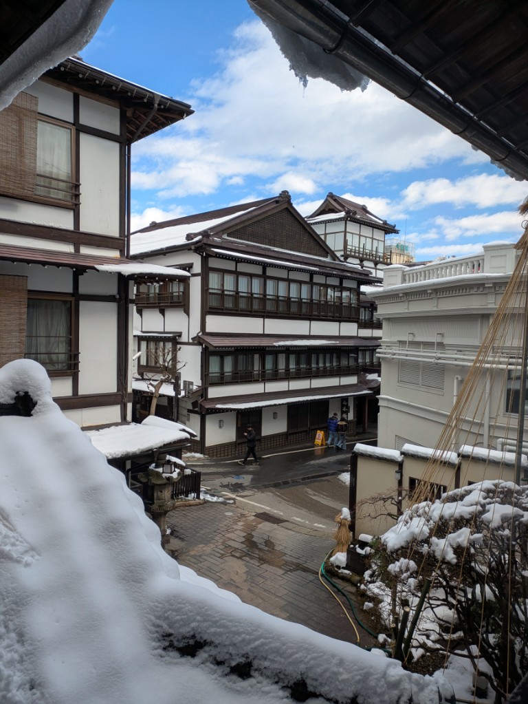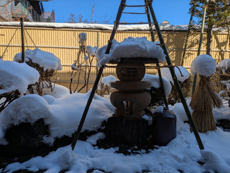気温は当館玄関先の気温計で5℃近くまで上がってきました。