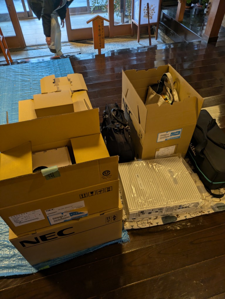 休館日を利用して館内の電話機一式を業者さんに来てもらい交換してもらいました。