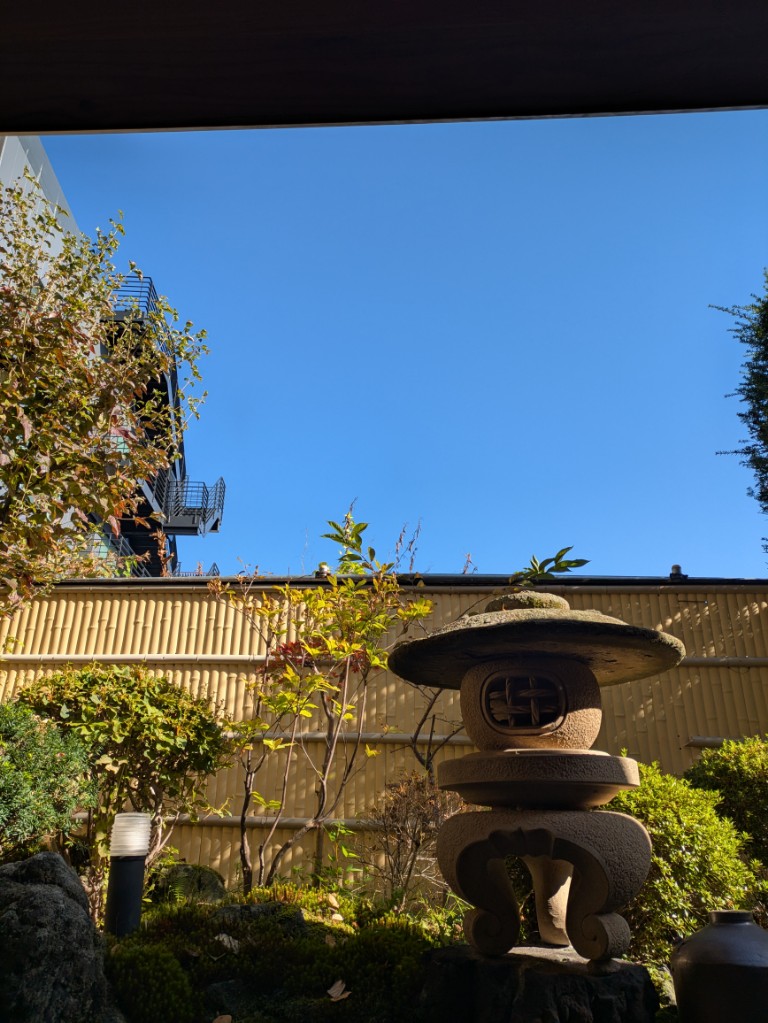 気温は当館玄関先の気温計で22℃近くまでまで上がっています