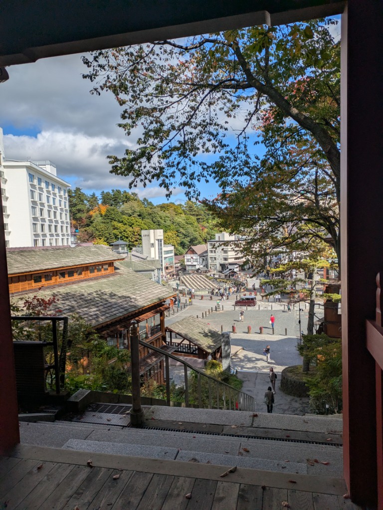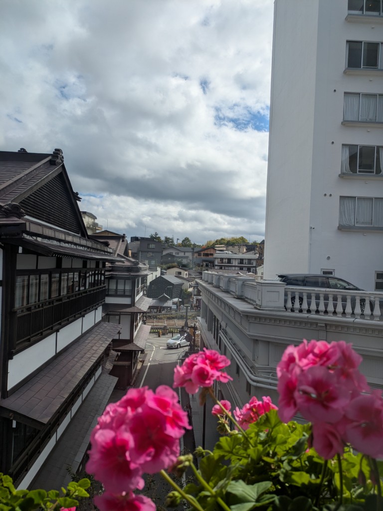 気温は当館玄関先の気温計で18℃まで上がっています。