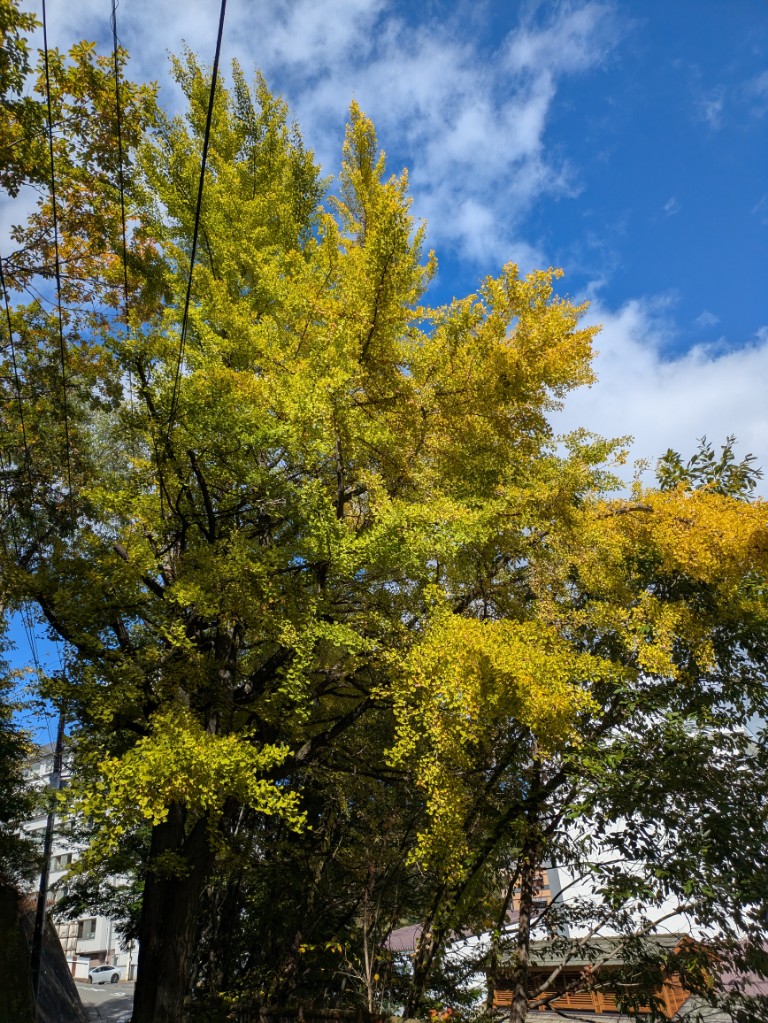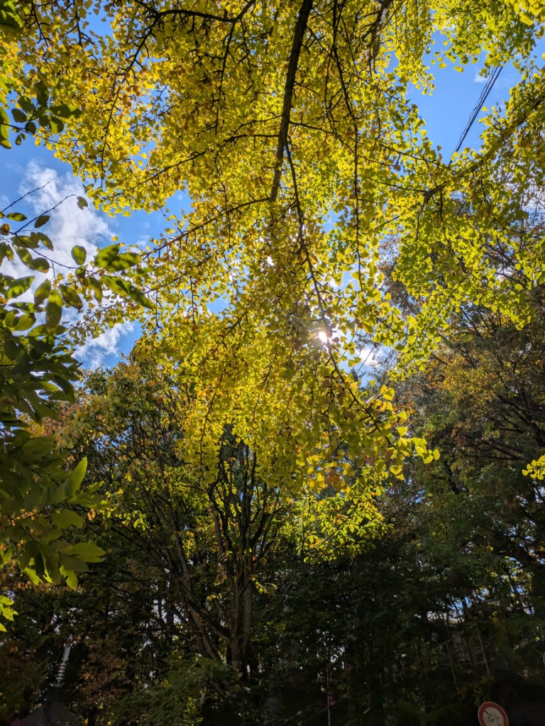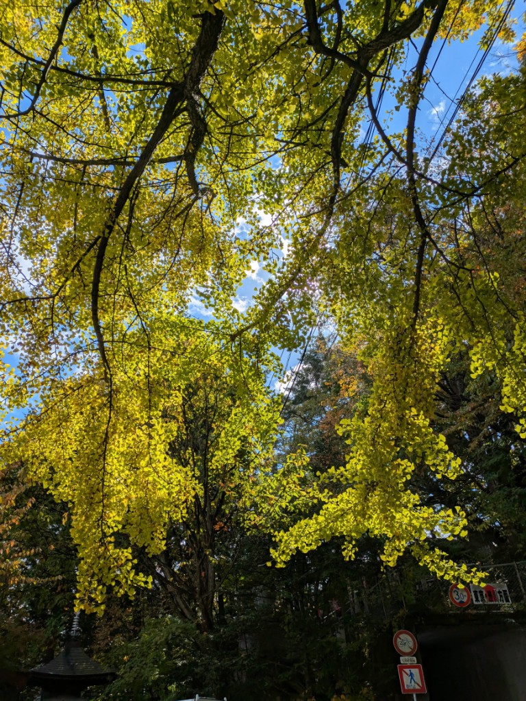 トンネル入口手前のイチョウの木の葉が黄色くなっていました。