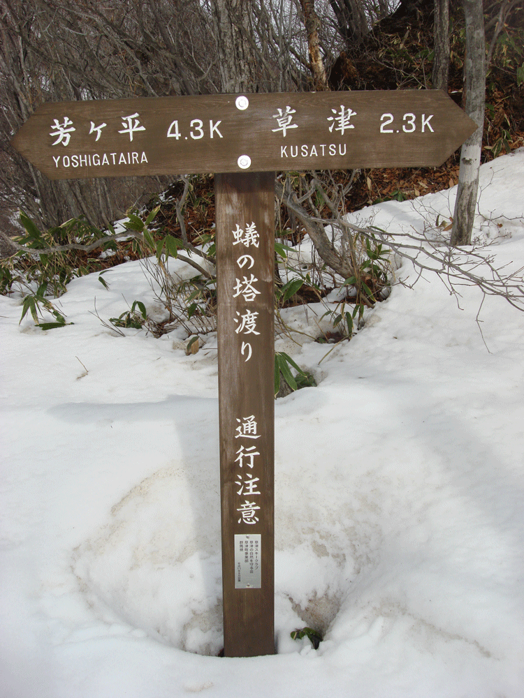 左のコースへ行きますとこんな場所もあります。「蟻の塔渡り」(ありのとわたり)と言う場所です。何気なく滑りましたが両脇は切り立った崖になっています。落ちたら大変な事になります。