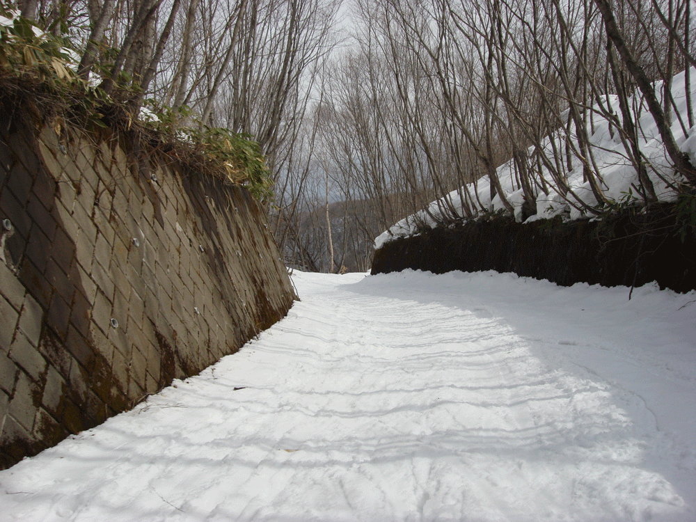 擁壁がありますので雪の無い時期は林道として使われている道です。