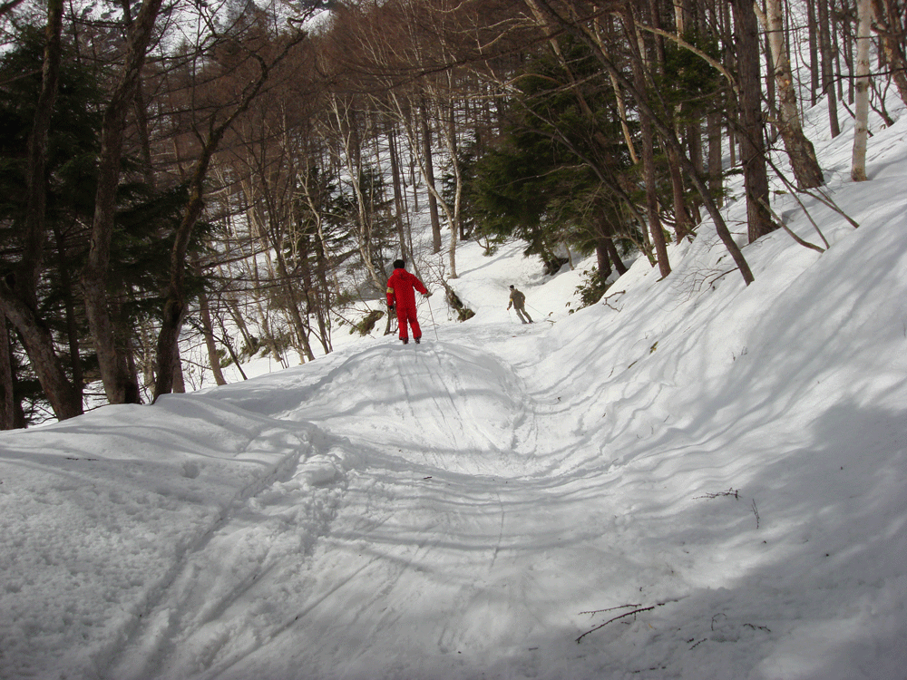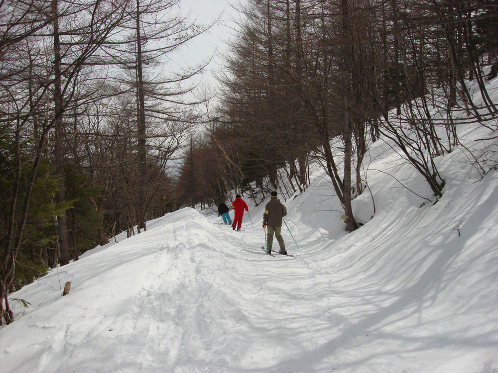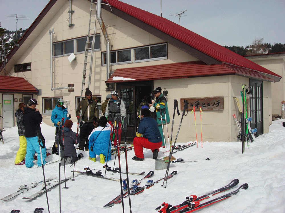 芳ケ平ヒュッテで一休み後にツアーコースを滑り下ります。