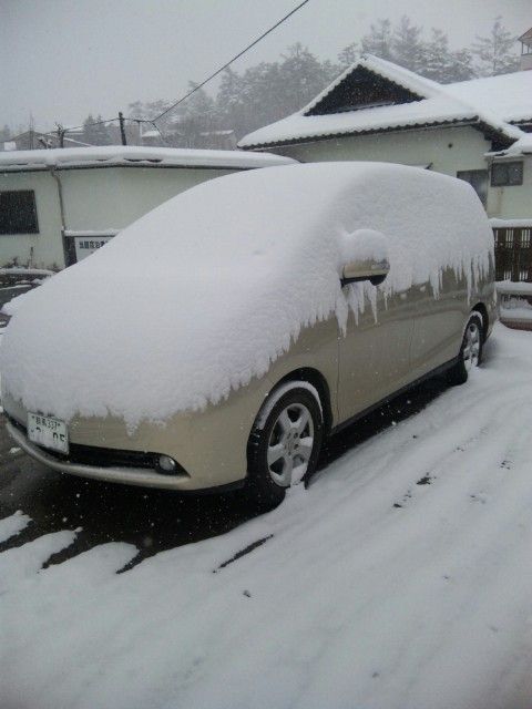 昨日の午後から雪が降っていましたが今日も降り続いています。久し振りにまとまった量の降雪となっています。気温は朝9時になりますが−8℃と厳しい冷え込みになっています。駐車場に停めてある車の上には30cm位積もっていました。町内の道路も雪が積もっていますので車でお越しいただくお客様は十分ご注意願います。