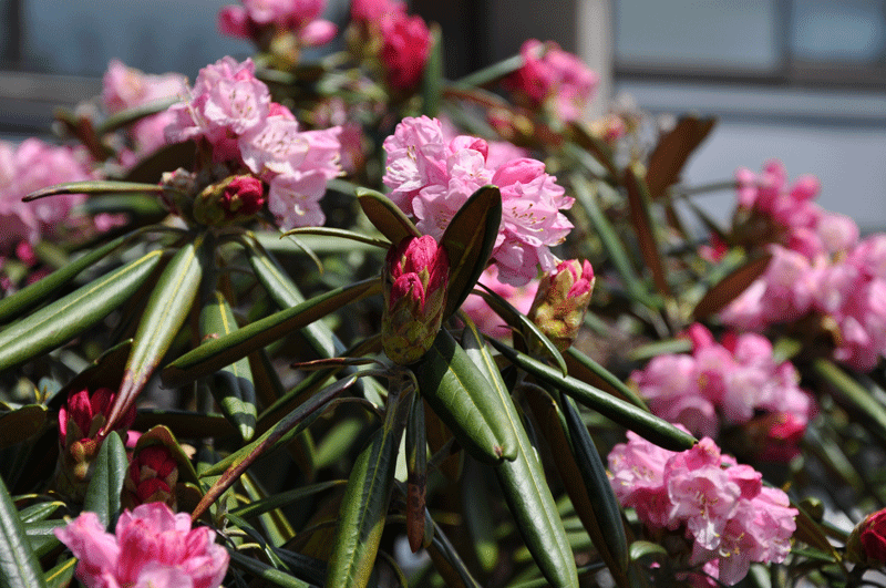 湯畑セブンイレブン前の植込みの石楠花がだいぶ咲いてきました。まだ蕾も多いです。