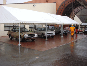 会場の外にも昔のスカイラインが展示されました。悪天候にもかかわらず大勢のお客様にお越しいただきました。