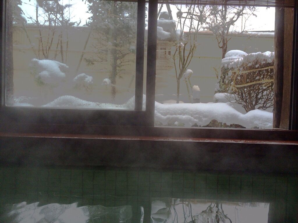 貸切風呂から眺める庭も綺麗に雪景色となりました。明日から草津国際スキー場が一部を除いて滑走可能となります。恵みの雪となっています。
