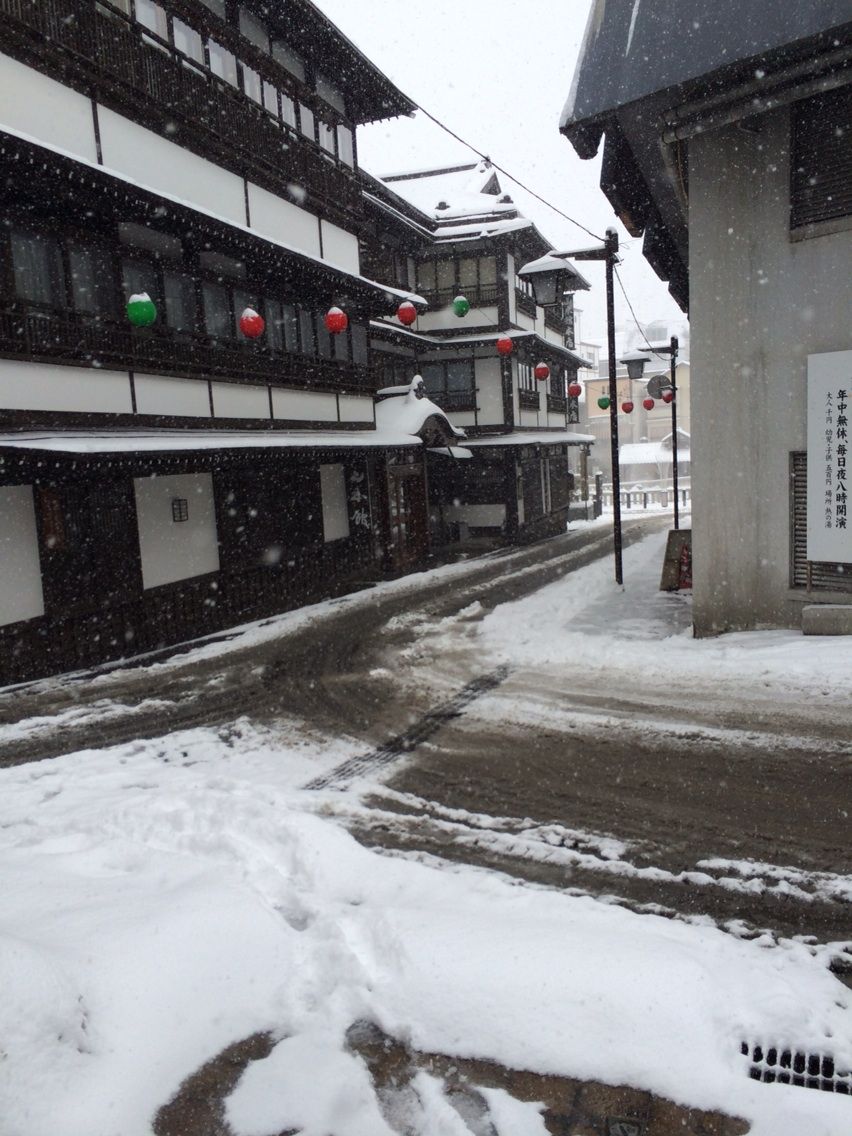 東京などの平野部で雪が降る里雪の時は草津温泉はあまり雪が降りませんが今回はばっちり降っています。昨日の天気から一転して真冬の景色になりました。