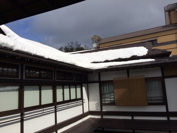 当館の貸切風呂の庭は日当たりが良くないのでまだまだたくさん雪が積もっています。