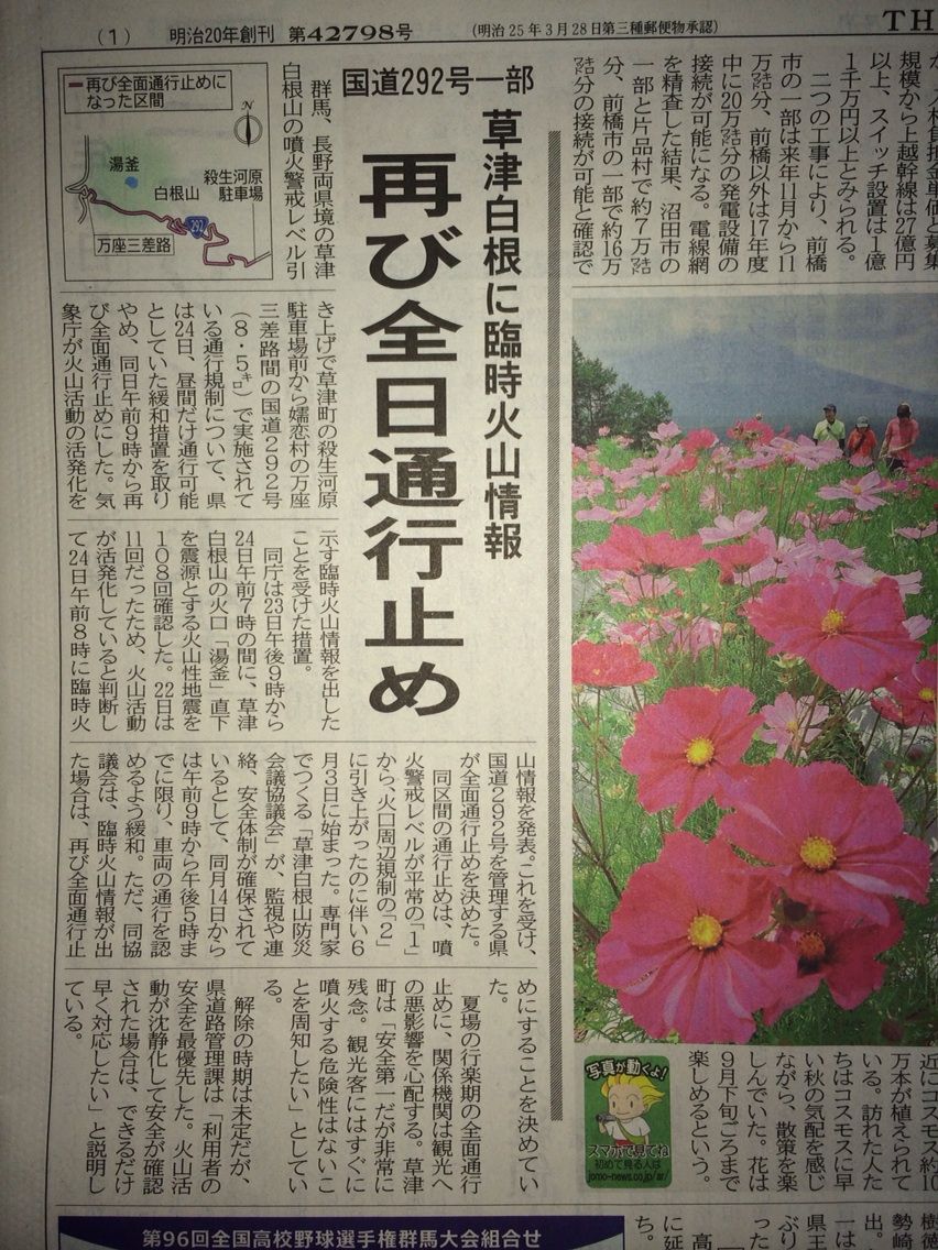 国道292号線志賀草津道路は通行止めです 2014 7/25 益成屋ブログ 2014年7月25日 国道292号線志賀草津道路(通称志賀草津高原ルート)は昨日から草津白根山の火山性活動のため草津側殺生駐車場前から万座三叉路まで車両全面通行止めとなっています。ご旅行の際のルートにはお気を付けくださいませ。 なお草津温泉には影響はなく普段通りですので安心してお出かけくださいませ。 益成屋ブログ シェアお願い致します♪ URLをコピーしました! URLをコピーしました! 色浴衣付きプランのお客様へ手提げバッグを用意しました 強い日差しが照り付けています 関連記事 晴れて良いお天気です 2025年11月4日 雪混じりの雨が降っています 2025年11月3日 薄曇りの空模様です 2025年11月2日 晴れて日差しがあります 2025年11月1日 どんよりと曇り空です 2025年10月31日 本日も良いお天気です 2025年10月30日 本日も青空が広がっています 2025年10月29日 本日も良いお天気です 2025年10月28日