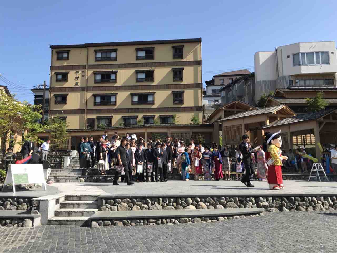 草津温泉の観光大使のゆもみちゃんや湯畑にいらっしゃったお客様にもお祝いしていただいたようで思い出に残る成人式だったと思います。