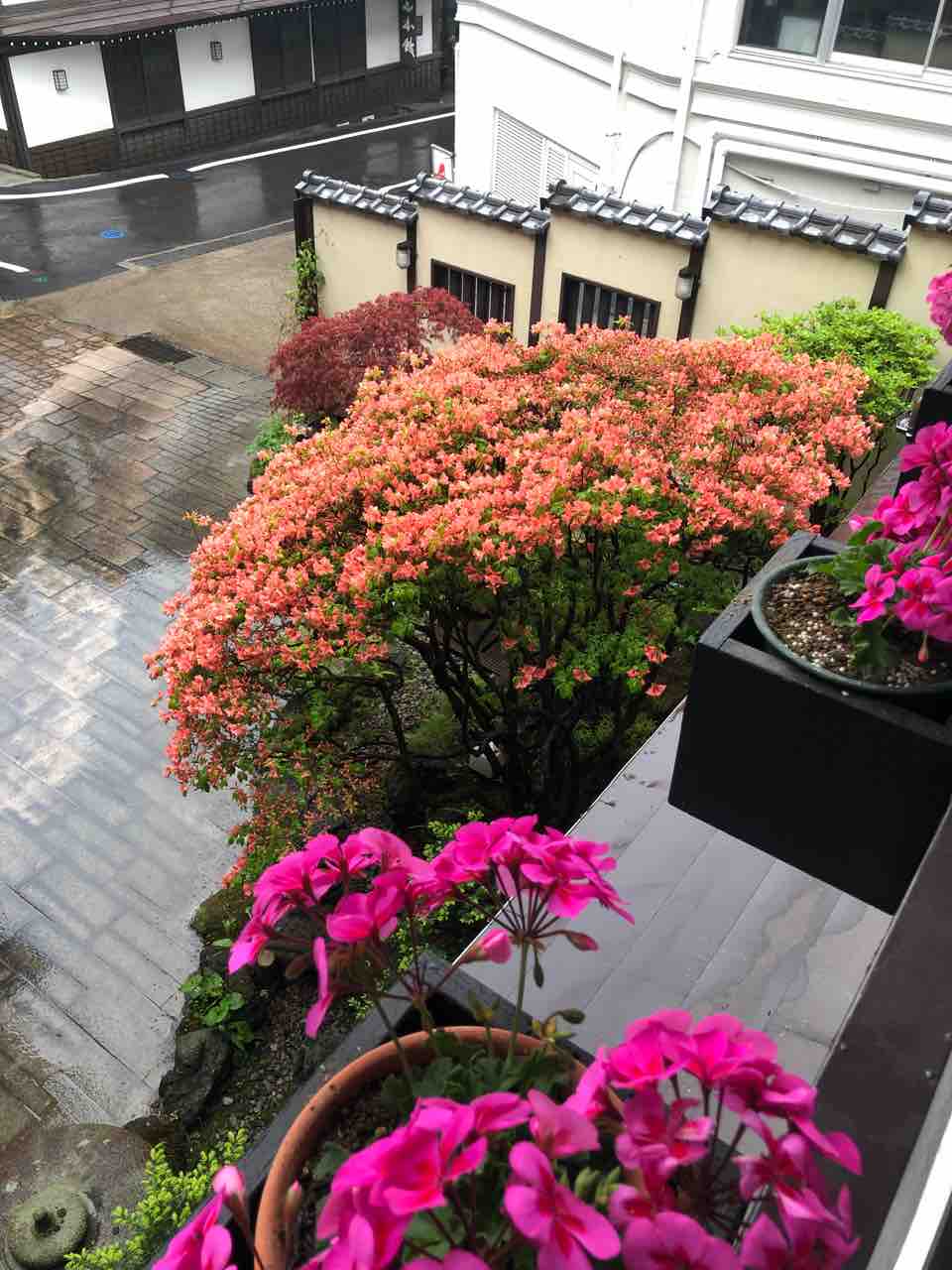 雨が降り続いています 2019 5/21 益成屋ブログ 2019年5月21日 各地で大雨のようですが当地も雨が降り続いていますが強くなったり弱くなったりの降り方です。 気温は15℃と低めでひんやりとしています。 この雨も明日には止んで気温が高くなるようですのでお天気の回復を期待したいです。 玄関先のツツジも雨に打たれていますが綺麗に咲いています。 お天気が良くなり気温が上がれば明日以降には満開になりそうです。 貸切風呂の庭の植木も雨に打たれて緑が濃く見えます。 益成屋ブログ シェアお願い致します♪ URLをコピーしました! URLをコピーしました! 国道292号線志賀草津道路は通行止めのままです 本日は良いお天気になっています 関連記事 晴れて良いお天気です 2025年12月18日 雲が広がっています 2025年12月17日 晴れて良いお天気です 2025年12月16日 空が明るくなりました 2025年12月15日 雪が積もりました 2025年12月15日 雨が降ったり止んだりの空模様です 2025年12月14日 晴れて良いお天気になりました 2025年12月13日 北風が吹き荒れています 2025年12月12日
