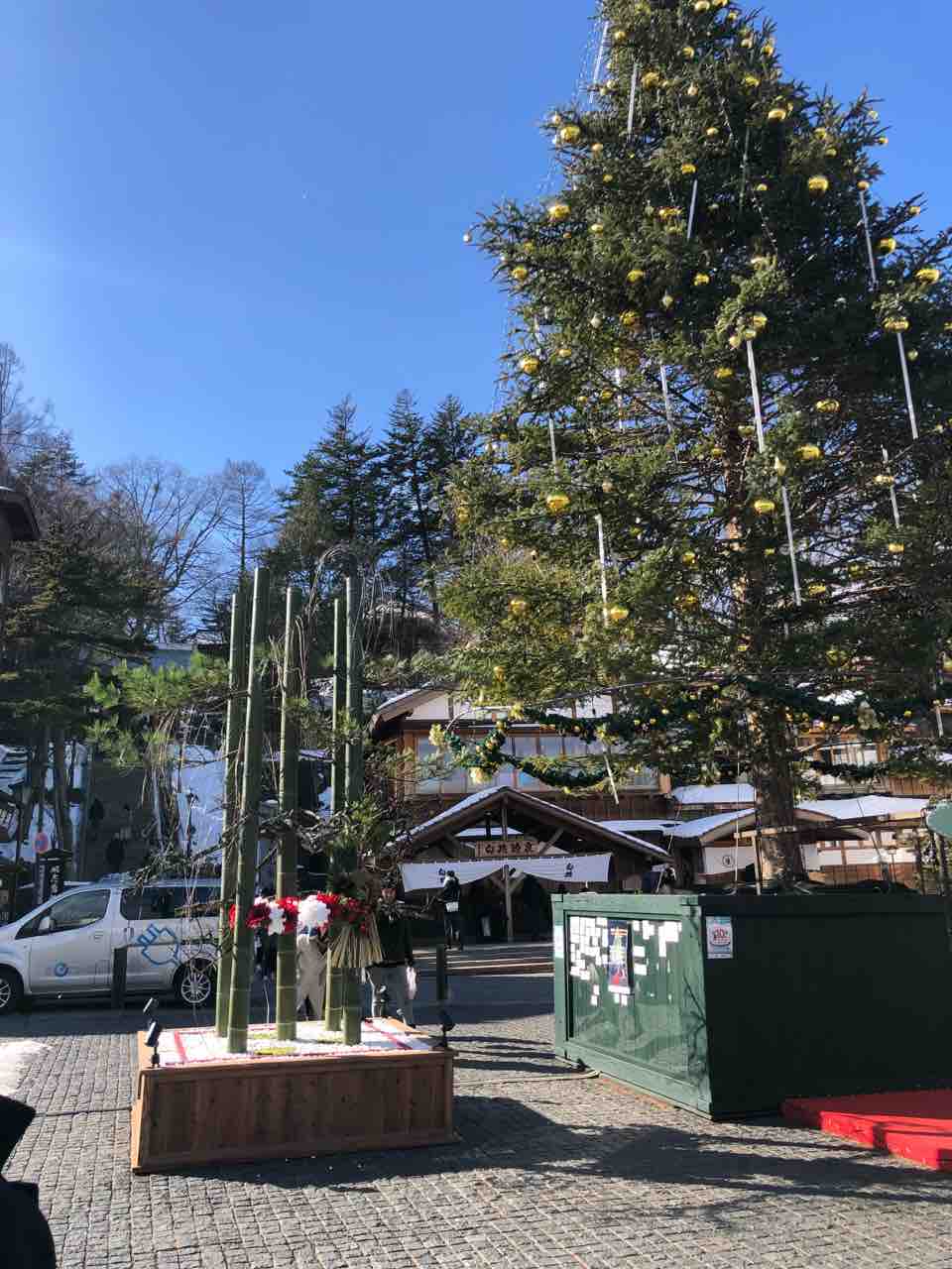 お正月二日目も良いお天気です 2020 1/02 益成屋ブログ 2020年1月2日 お正月二日目の本日はほんの少し雪が舞っていますが晴れて穏やかな冬場れの行楽日和となっています。 気温は日陰で3℃と低くて日差しはありますが空気はひんやりとしています。 旅館組合の用事で町内に出かけましたが湯畑も大勢のお客様で賑わっています。 草津温泉バスターミナル横の駐車場は満車で駐車待ちの車が連なっていました。 湯畑ツリーの横にはくさつフラワーさんが造った門松があります。 夜には電飾が灯り昼間とは全く違う雰囲気になりますので二度お楽しみいただけます。 益成屋ブログ シェアお願い致します♪ URLをコピーしました! URLをコピーしました! 冬晴れの元日を迎えております 本日も良いお天気です 関連記事 また雨が落ちてきました 2025年11月9日 本日も良いお天気です 2025年11月8日 貸切風呂庭の落ち葉を片付けました 2025年11月7日 強い風が吹いています 2025年11月7日 温泉用のポンプの入れ換えが終わりました 2025年11月6日 雲が広がってきました 2025年11月6日 曇ってしまいました 2025年11月5日 晴れて良いお天気です 2025年11月4日