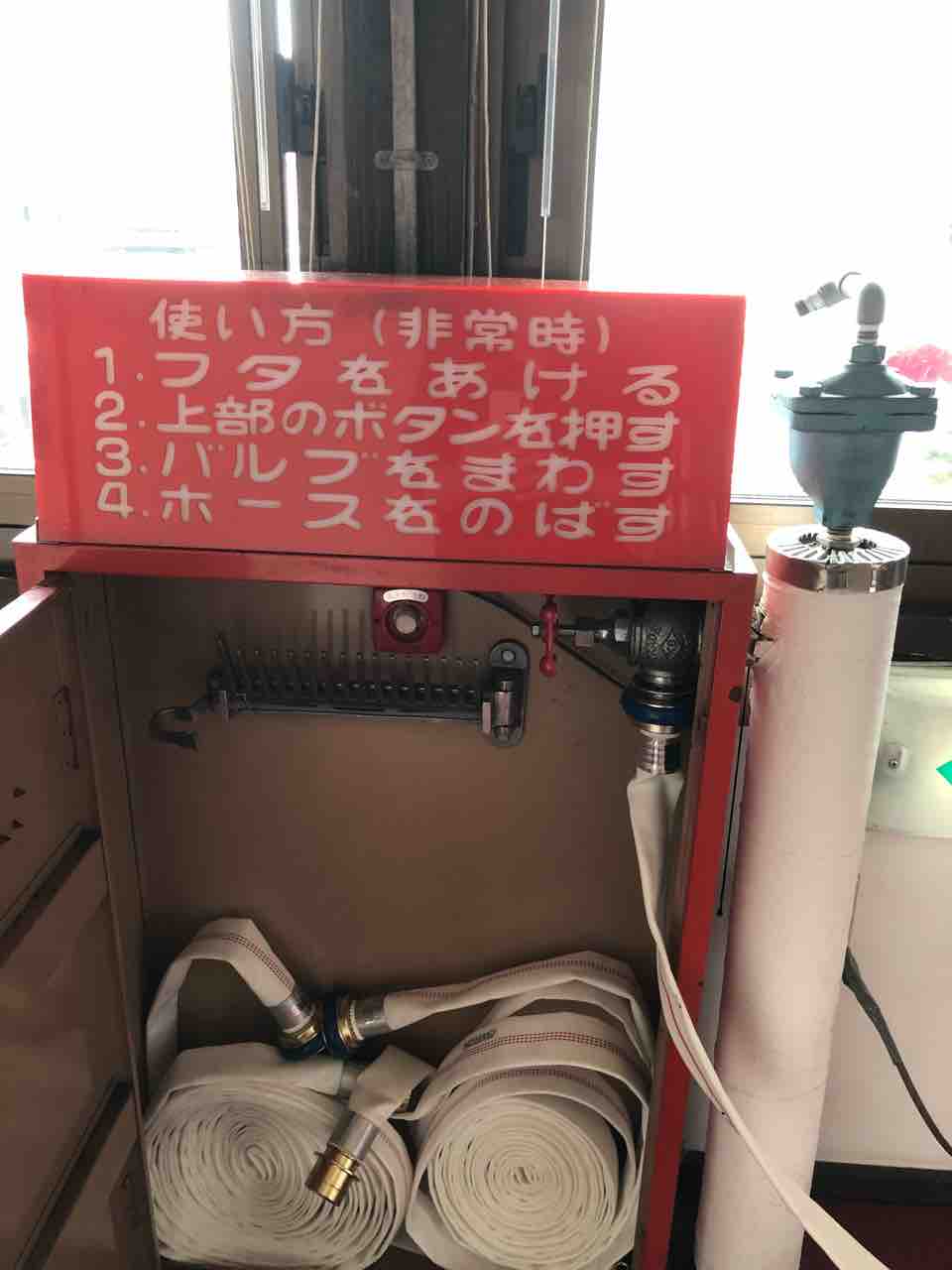 自衛消防訓練を行いました 2020 5/31 益成屋ブログ 2020年5月31日 午前中に年2回義務付けられています自衛消防訓練の1回目を行いました。 客室の火災熱感知器を温めて作動させて館内一斉放送の火災発生のアナウンスを発報させて訓練開始です。 スタッフは全客室を周り避難誘導をして女将は事務所で消防署への通報・私は初期消火担当と分担しています。 先月に業者さんに点検してもらったばかりで受信器や館内一斉放送・消防署への非常通報装置は正常に作動しました。 最後に屋内消火栓を作動させて大風呂屋根上から駐車場に向けて放水試験を行いました。 充分な水量と圧力で正常に作動していました。 放水試験で使ったホースは3階の手摺に掛けて水抜きをして乾いたら取り込んでまた消火栓のボックス内にセットしておきます。 2回目は冬を迎える前に行う予定です。 現在は喫煙所以外は禁煙とさせていただいておりますので以前のような寝タバコの心配は無くなり少しは安心していますが調理で火を使いますので今後も気を付けて営業をさせていただきます。 益成屋ブログ シェアお願い致します♪ URLをコピーしました! URLをコピーしました! 雲が広がっています 本日もどんよりと曇り空です 関連記事 青空が広がっています 2025年10月8日 また雨降りに戻りました 2025年10月7日 良いお天気になりました 2025年10月6日 パイプの手入れをしました 2025年10月5日 雨が降ったり止んだりです 2025年10月5日 雨が降っています 2025年10月4日 雲が広がってきました 2025年10月3日 青空も見えています 2025年10月2日