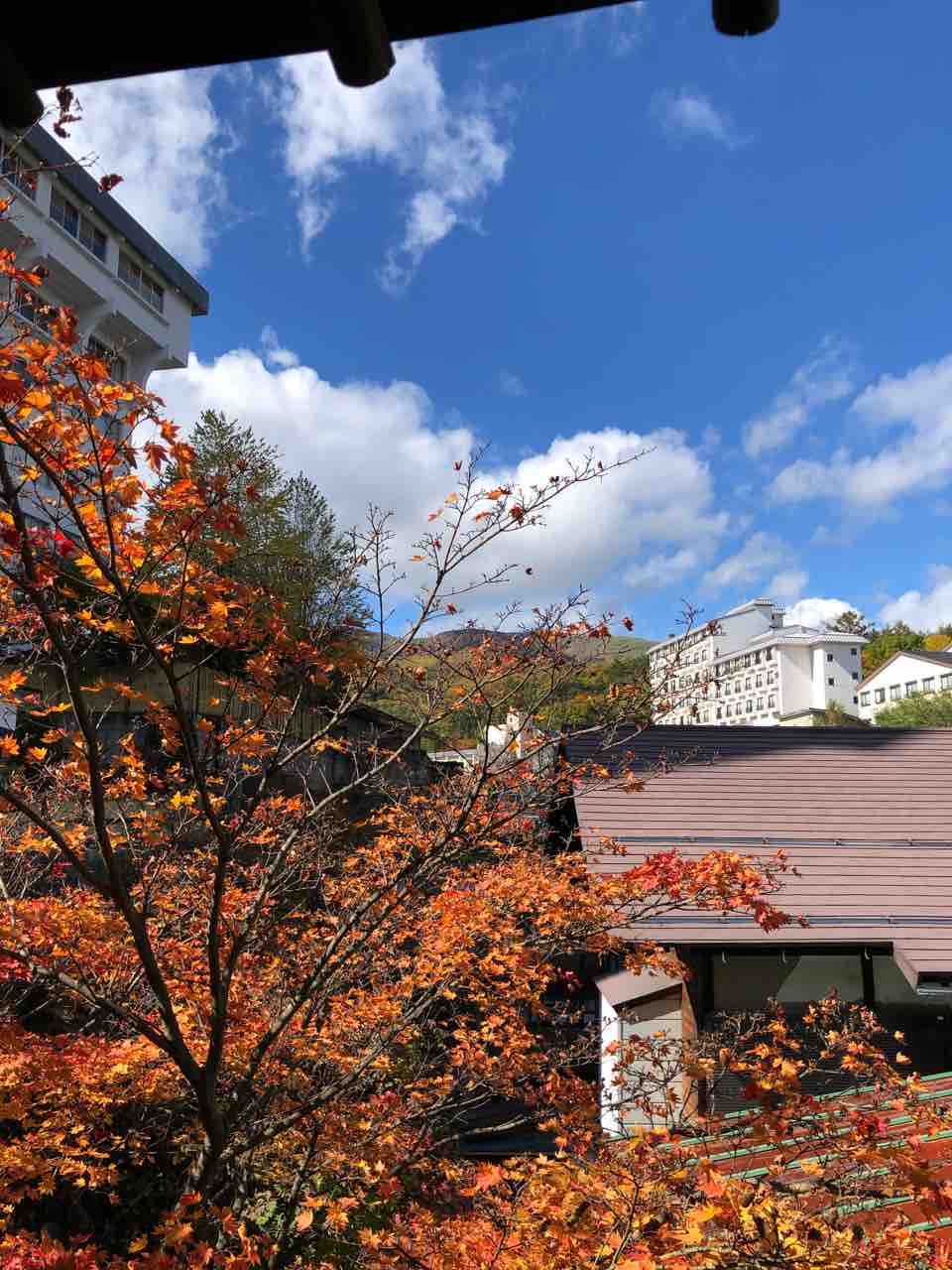 昨夜は風が強かったので貸切風呂廊下の外のもみじの葉っぱもだいぶ散ってしまいました。