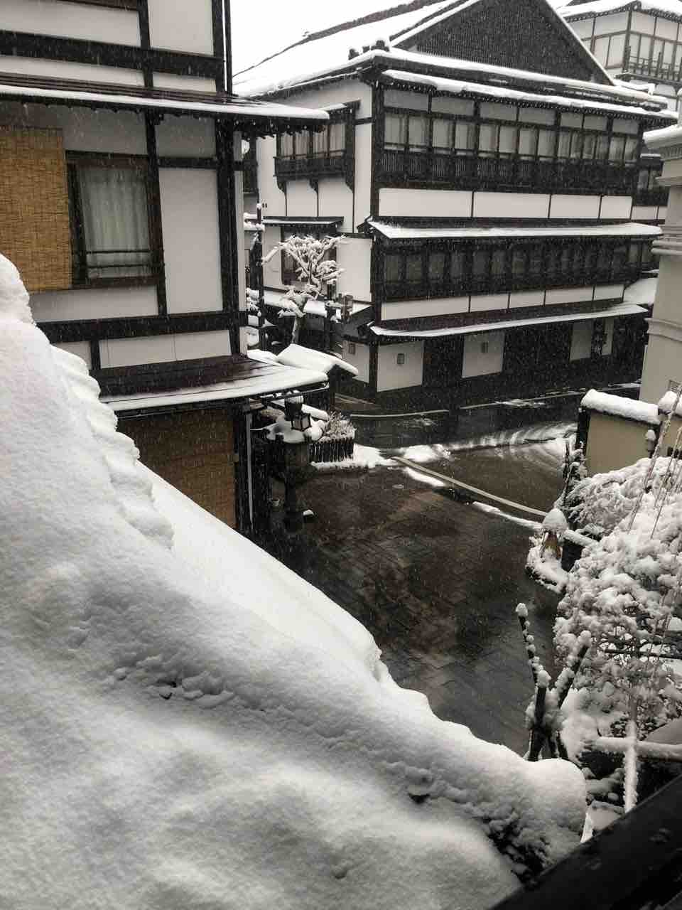 今のところ当館玄関前や融雪道路の雪は溶けていますが路肩やグレーチングには残っていて足元が悪くなっています。