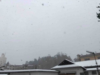 気温は当館玄関先の気温計で-1℃とそれほど驚くほどは冷え込んでいません。