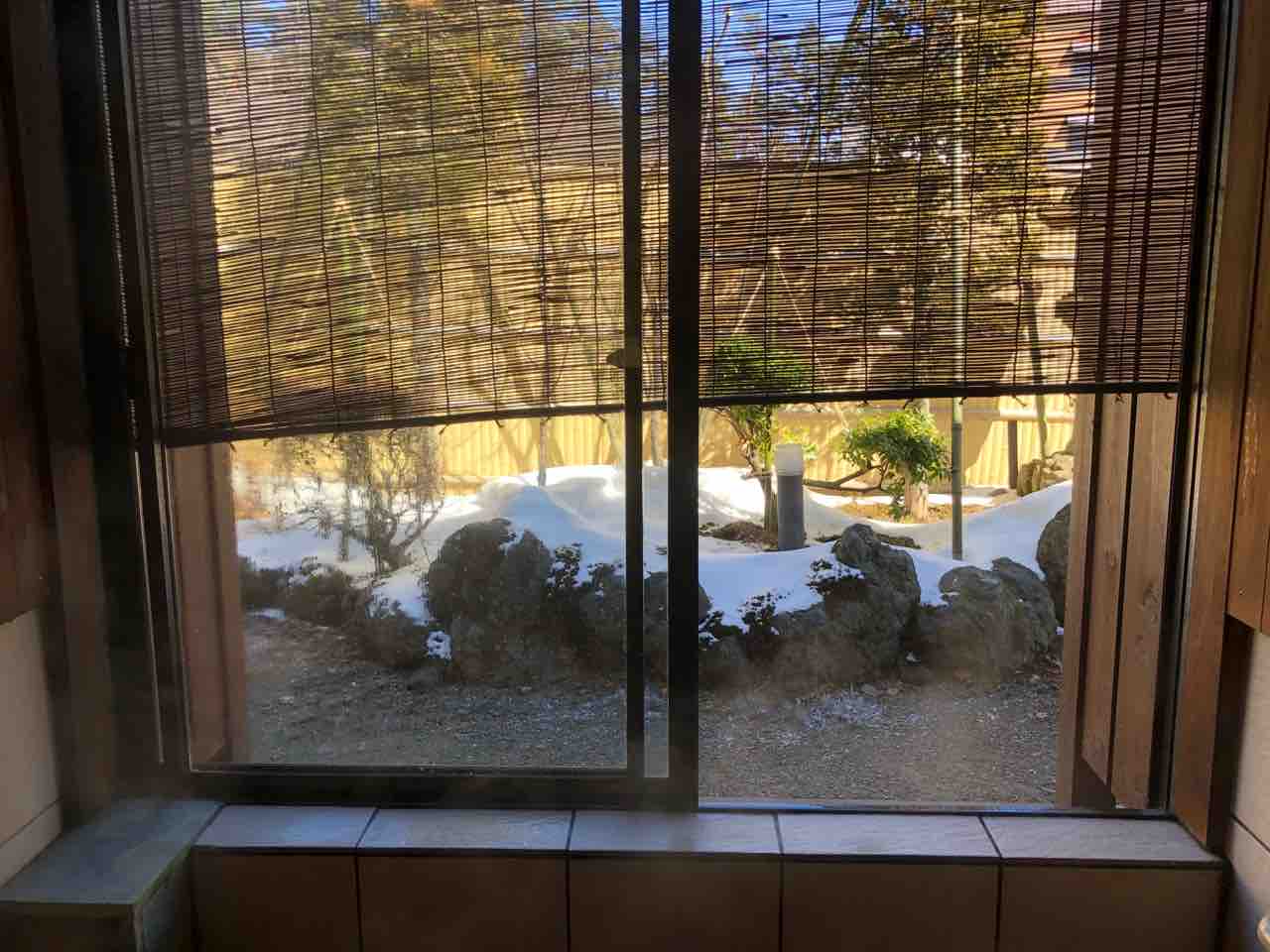 貸切風呂の庭も地面や石がだいぶ見えるようになってきました。