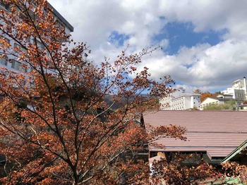 気温は当館玄関先の気温計であと少しで14℃まで上がっています。