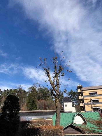 気温は当館玄関先の気温計で11℃まで上がっていますが風が吹いていますのでもっと寒く感じます。