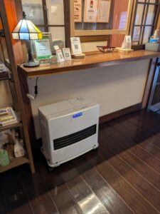気温は当館玄関先の気温計であと少しで5℃と低くて冷たい雨です。