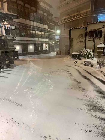 本格的な雪になっています 2021 12/17 益成屋ブログ 2021年12月17日 当地も今シーズン初の本格的な降雪となっています。当館玄関先の融雪も効かずに真っ白になってしまいました。 気温は当館玄関先の気温計で-5℃と真冬の冷え込みになっています。さすが今シーズン一番の寒気です。 融雪道路も雪の量と冷え込みで融雪が間に合わず真っ白になっています。 既に当館前の坂を登れずスリップしている車も出始めました。 お恥ずかしい限りですが雪道でのノーマルタイヤ走行は道路交通法違反となるとの事を先日知りました。明日の状況はまだ分かりませんが今シーズン初の本格的な雪道ですのでお車でお越しのお客様は十分ご注意ください⚠️ 北風がビュービュー吹き荒れています。 積もりそうなので地下に流れこんで普段はポンプアップして捨てている水を玄関前に流し始めました。当館玄関前も融雪してありますので少しは溶けてくれそうです。積もりすぎてひどい事にならないように願いながら今夜は休みたいと思います。 当館の冬用のブーツです。軽くて暖かく評判は良いですが雪道は滑りやすいので十分ご注意ください。 益成屋ブログ シェアお願い致します♪ URLをコピーしました! URLをコピーしました! 本日も晴れていますが風が冷たいです 今朝の様子です 関連記事 良いお天気が続いています 2025年12月19日 晴れて良いお天気です 2025年12月18日 雲が広がっています 2025年12月17日 晴れて良いお天気です 2025年12月16日 空が明るくなりました 2025年12月15日 雪が積もりました 2025年12月15日 雨が降ったり止んだりの空模様です 2025年12月14日 晴れて良いお天気になりました 2025年12月13日